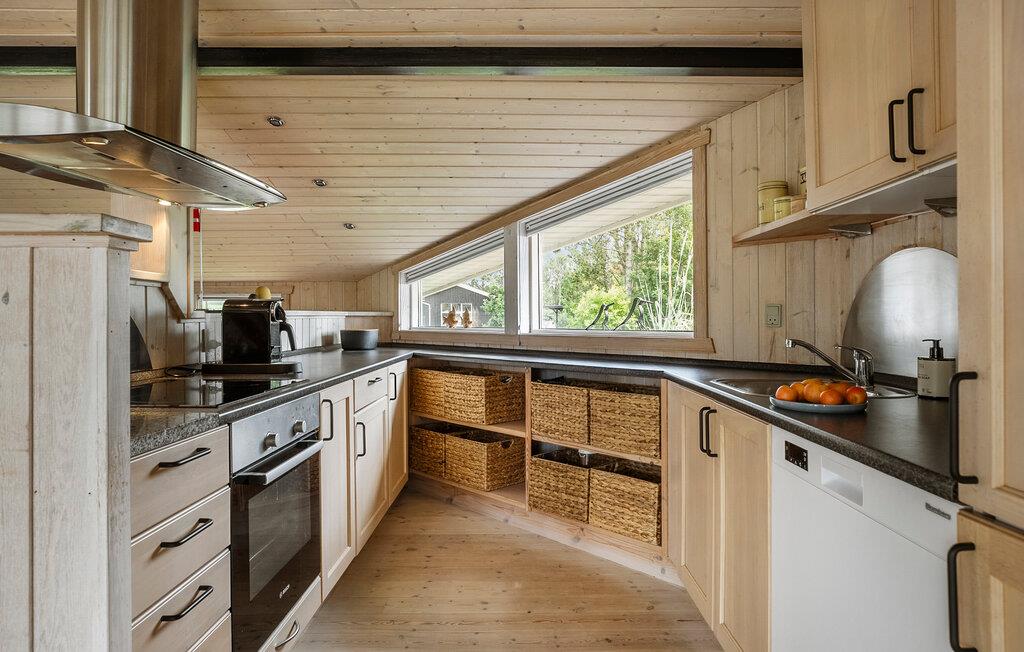 Beliggende i en smuk, idyllisk have og kun en kort gåtur fra den børnevenlige sandstrand ved Lyngså byder dette hyggelige og komfortable feriehus jer velkommen. Lad udsigten over de grønne områder inspirere jer, mens I laver mad. Efter harmoniske måltider kan I lægge fødderne op i læsestolen i den åbne opholdsstue og bruge den dejlige stue til afslappende filmaftener eller hyggelige samtaler over et glas vin.