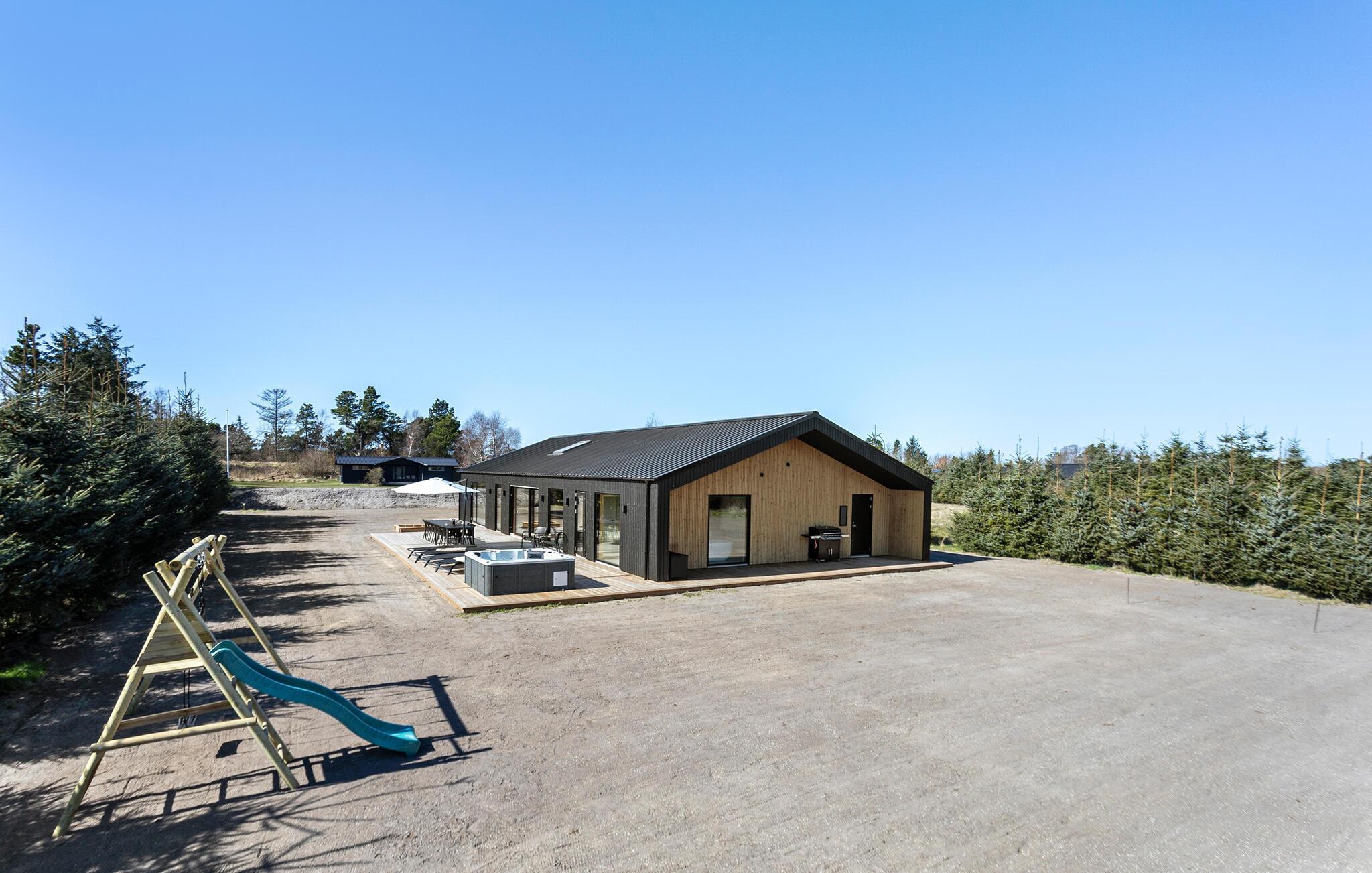 Slap af på terrassen, mens I nyder solen og se børnene gynge eller grave i sandkassen, nyd en stille stund i spabadet og afslut en skøn dag med et lækkert grillmåltid udendørs. Pak jeres strandtaske og gå til den bilfri og børnevenlige strand. Snup en frisk dukkert i Kattegats farvande og se efter de flotteste muslingeskaller på stranden. En kort køretur fører jer til Sæby, hvor I kan besøge den rolige havn og slentre gennem den charmerende gågade.