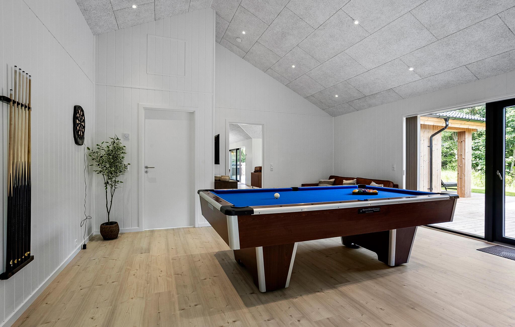 Varme trætoner, diskrete farver og kærligt udvalgte møbler skaber en atmosfære, hvor I kan slappe af og lade op på samme tid. Det rummelige sofaområde tilbyder plads til at læse, slappe af eller nyde en hyggelig filmaften. De, der foretrækker en mere aktiv oplevelse, kan nyde et spil billard eller bordfodbold, mens lækre måltider tilberedes i det moderne køkken, ledsaget af duften af friske ingredienser og et glas vin.
