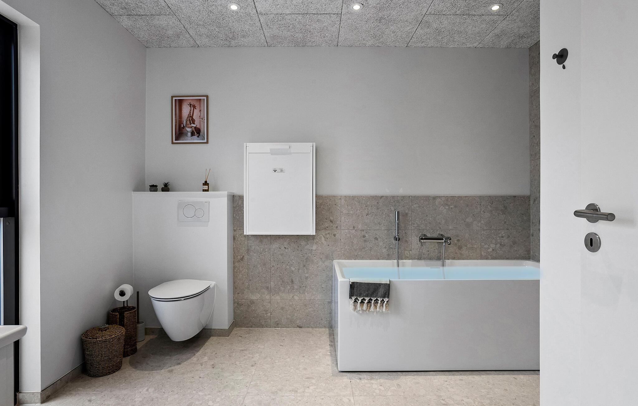 Badeværelse (nr. 1) - WC. Varmt og koldt vand. Bruser og badekar