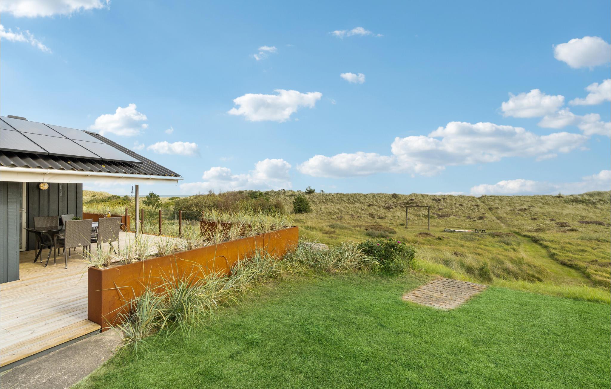 Dette skønne feriehus ligger bag yderste klitrække og har fra grunden direkte adgang til strandområdet. Indretningen fremtræder pænt og indbydende med varme træpaneler, der skaber en hyggelig atmosfære og lyst til bare at slappe af og have det godt sammen. Læs en god bog i sofaen, spil nogle brætspil og rund aftenen af med et godt glas vin.