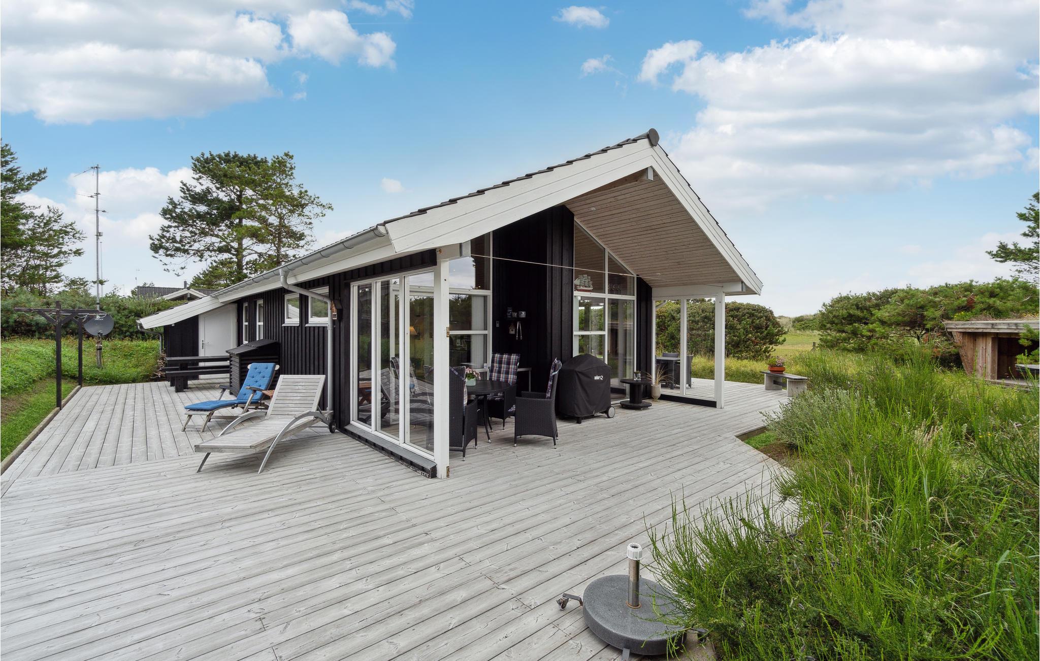 Med en attraktiv beliggenhed, kun få skridt fra klitterne og sandstranden, finder I dette fantastiske feriehus. Det er smagfuldt indrettet og danner de ideelle rammer for en ubekymret ferie med fred, komfort og velvære. Tilbered jeres yndlingsretter sammen i det store køkken, mens I nyder udsigten over omgivelserne. I den store, lyse stue vil I tilbringe mange hyggelige timer med dem, I holder af, hvad enten I spiller brætspil eller læser den udvalgte feriebog. Efter en dag i den friske luft kan I finde hyggelig varme i saunaen og få masseret musklerne i boblebadet. Den rummelige træterrasse går næsten rundt om hele huset og giver ideelle muligheder for at slappe af og solbade i løbet af dagen. De små kan lege på naturgrunden, og der er også et shelter, hvis man vil overnatte udenfor med kig til stjernerne.