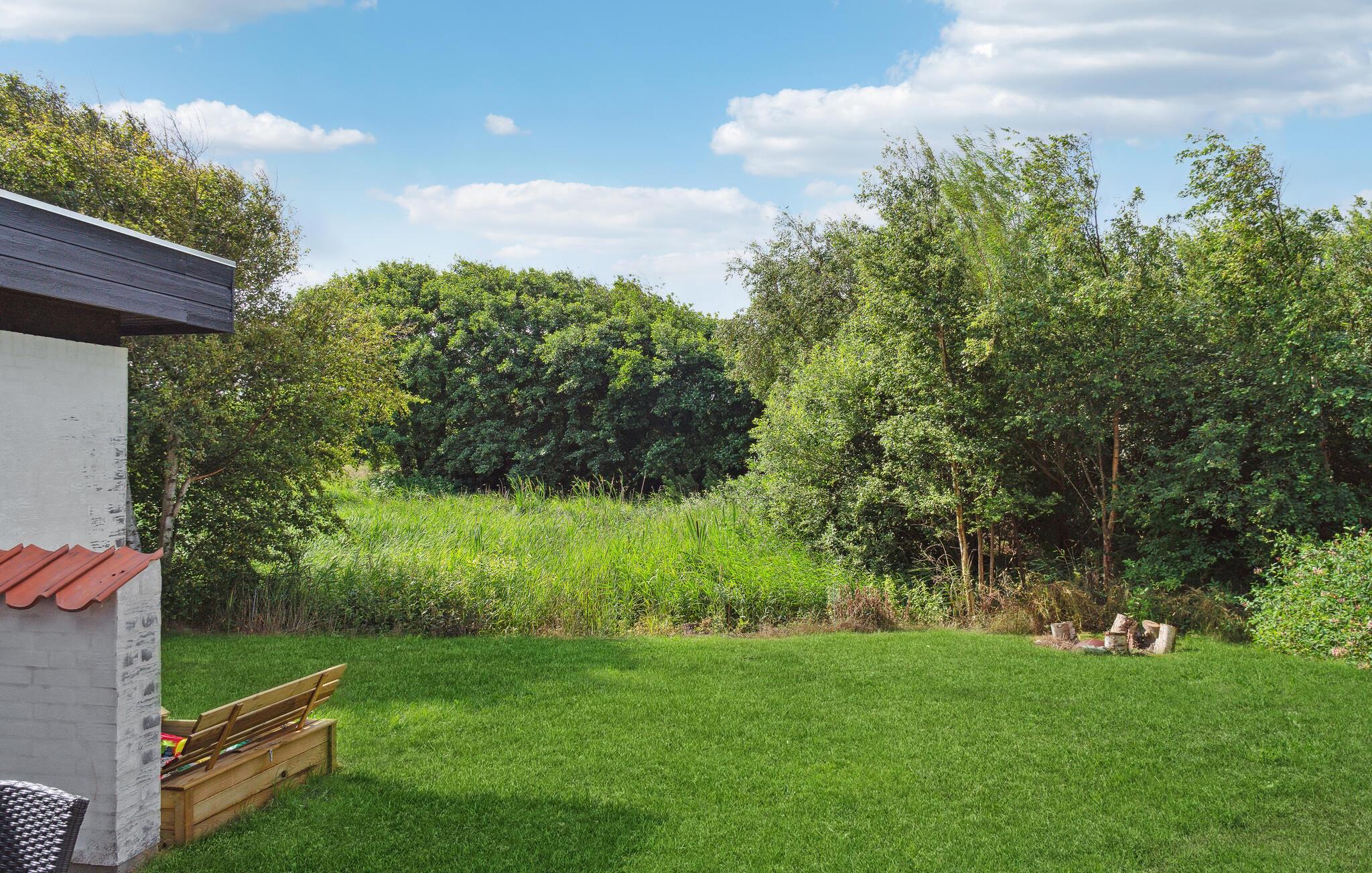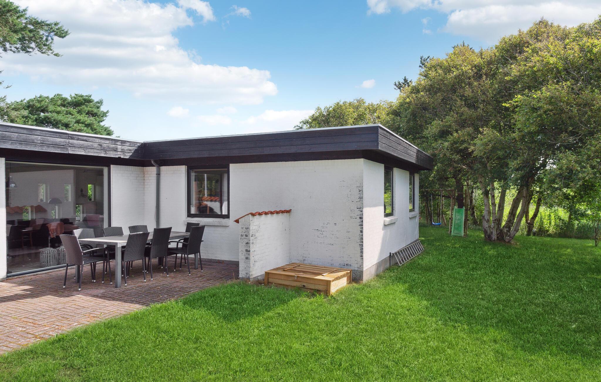 Kom tæt på naturen fra husets terrasser – og nyd fuglenes sang eller den børnevenlige sandstrand. Huset ligger på en dejlig naturgrund i et roligt feriehusområde.