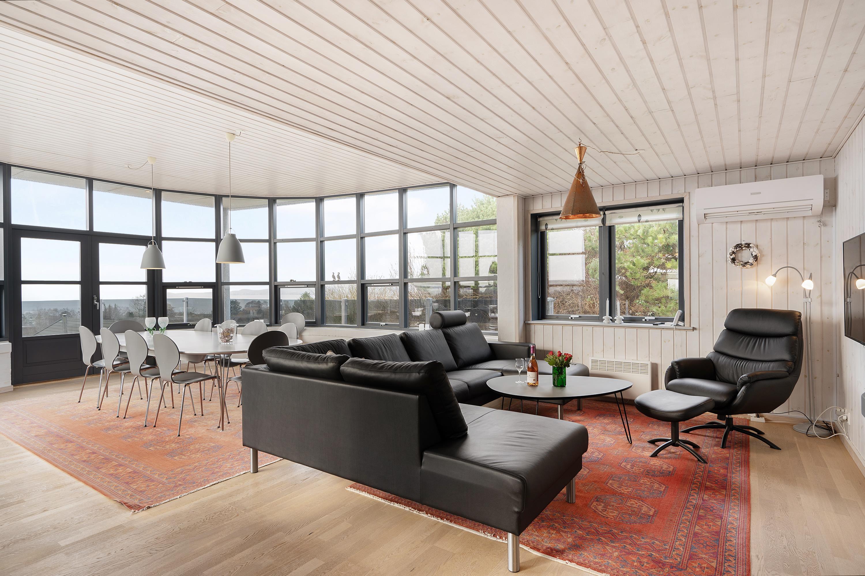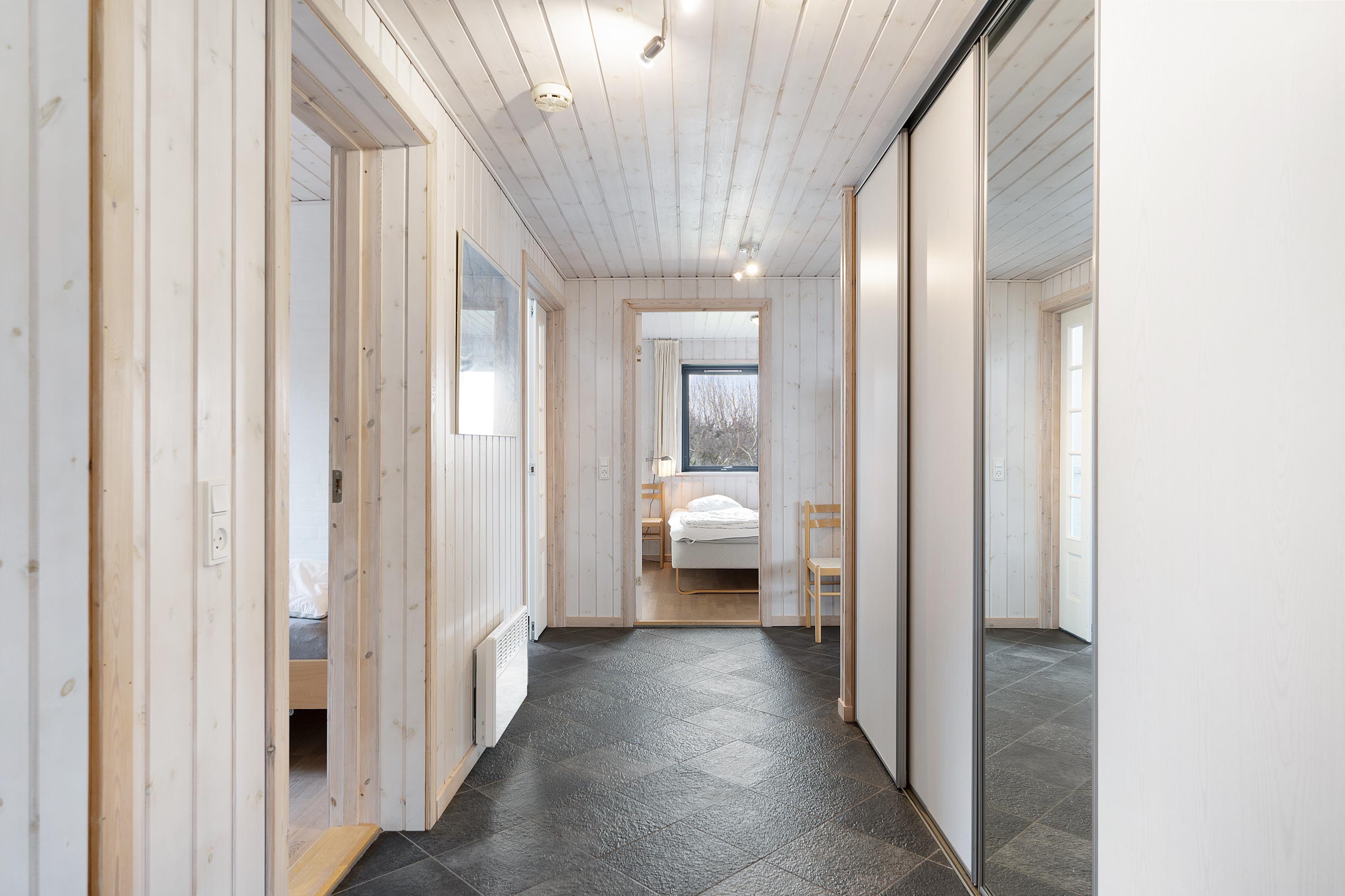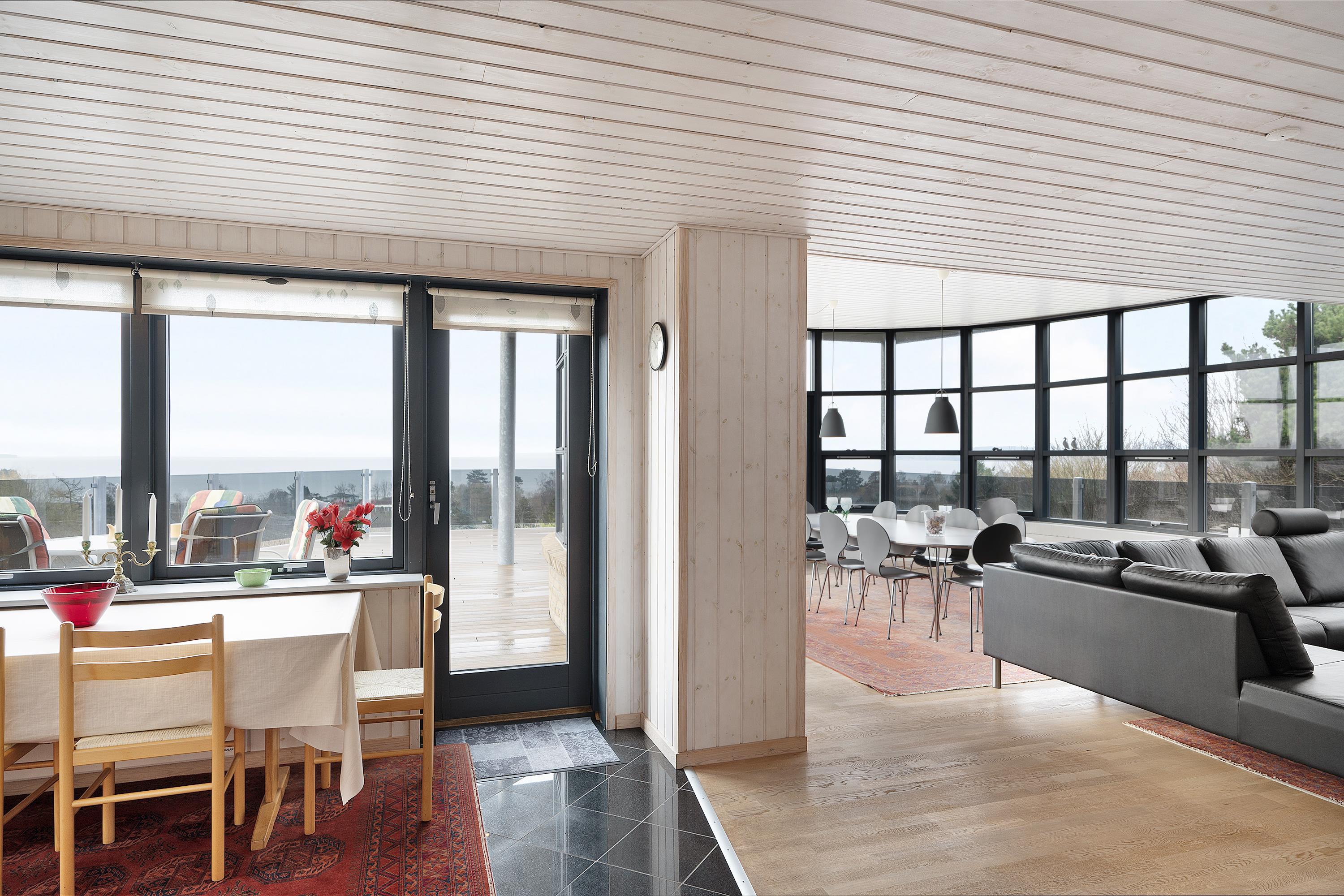 Husets hjerte er den store, lyse stue med den fantastiske udsigt. Her er spiseplads til 8 personer, dejligt sofamøblement, brændeovn, fjernsyn med danske (inkl. TV2) og tyske kanaler samt radio. I åben forbindelse med stuen finder man stort, velindrettet og -udstyret køkken med keramiske kogeplader, indbygningsovn, kølefryseskab, opvaskemaskine og mikrobølgeovn. Desuden spiseplads til 4 personer. Huset råder over 4 soverum – 2 gode værelser med dobbeltseng samt 2 værelser med 1 enkeltseng, i alt 6 sovepladser. Stort, lækkert flisebadeværelse med gulvvarme samt bruseniche, spa og vaskemaskine. Der er internetadgang.