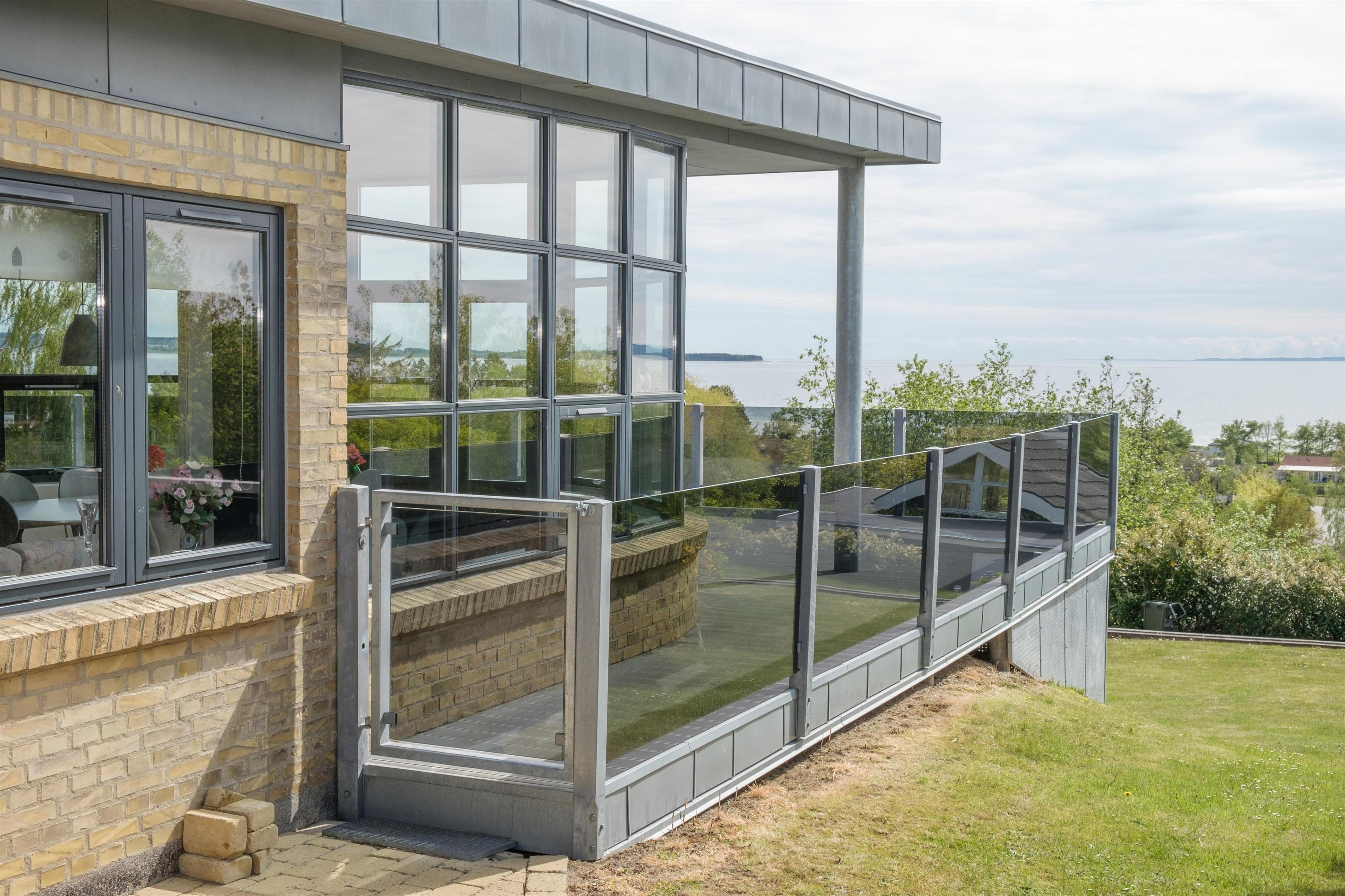 Rummeligt feriehus med panoramaudsigt ved Handrup Strand, tæt på børnevenlig strand og Ebeltoft Vig.