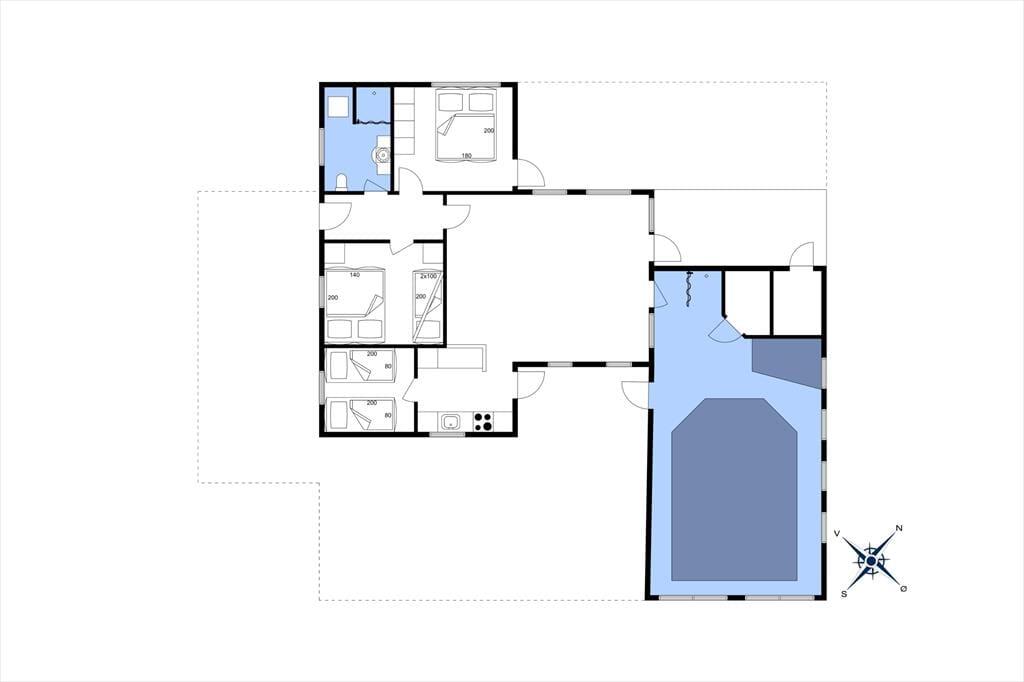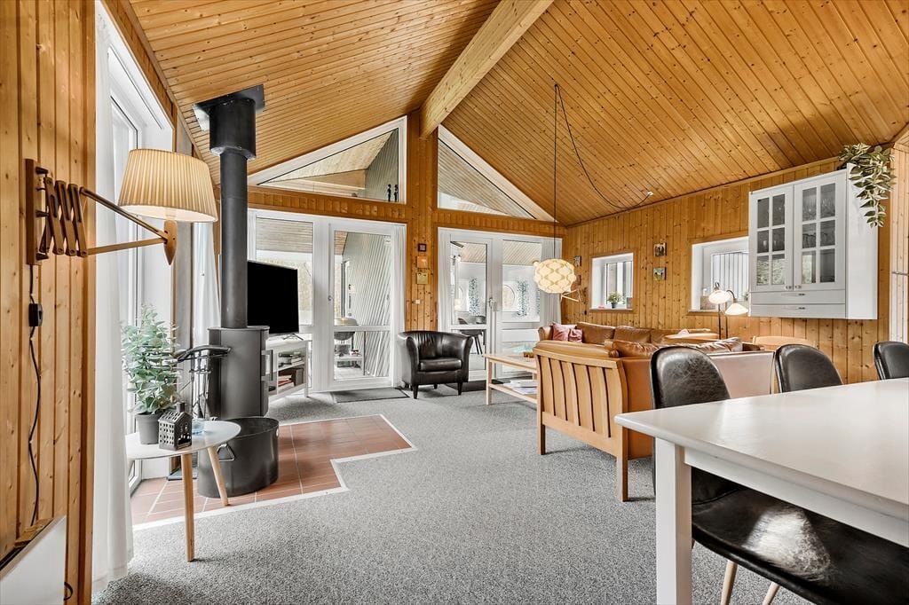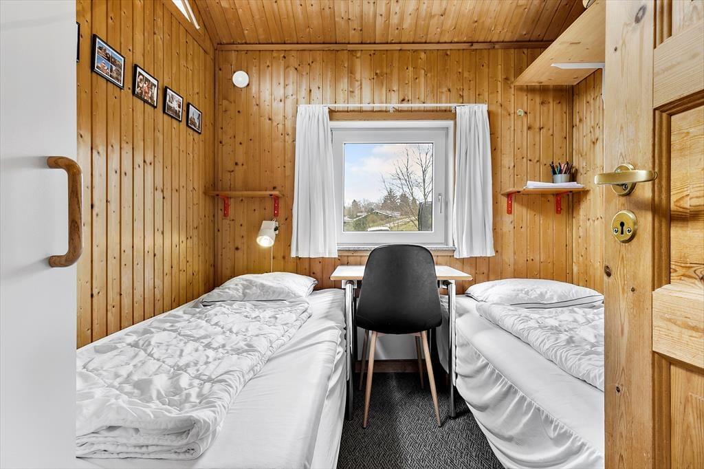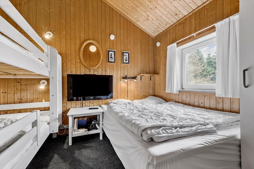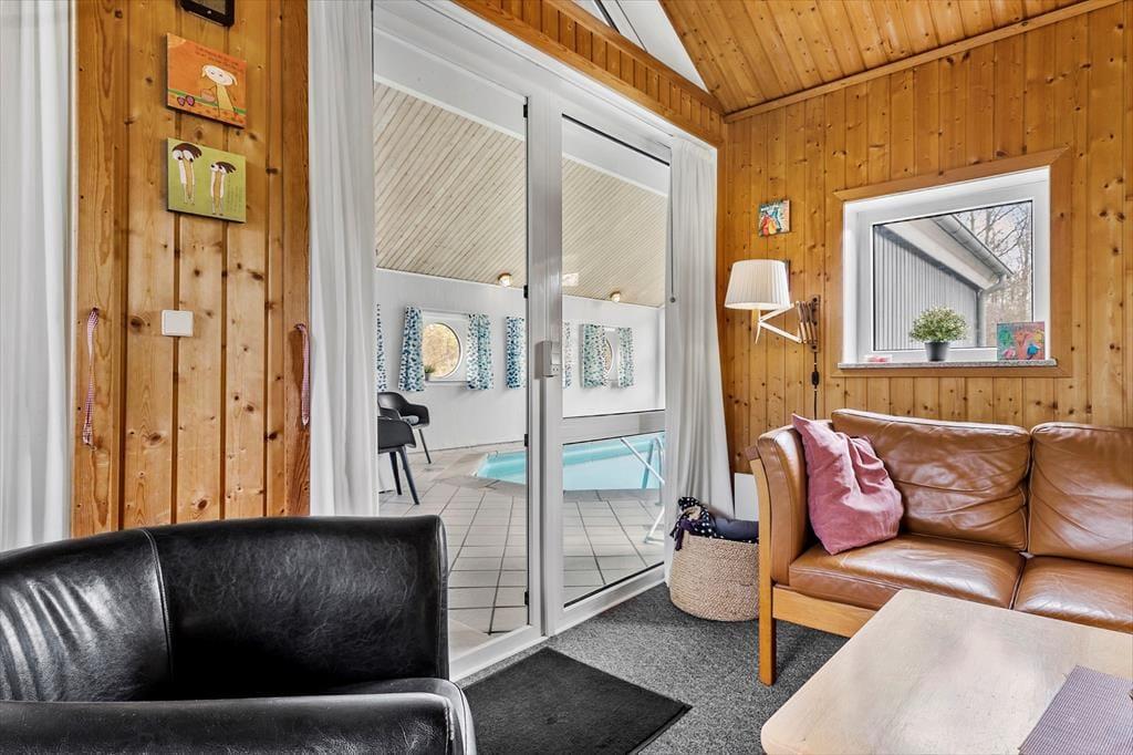 Dette hus byder virkelig på leg og aktivitet. Poolen, spaen og saunaen er hovedattraktionen her og det kan gøre både børn og voksne trætte. Du kan sidde i stuen og stadig have et øje på dem der er i poolen. Køkkenet ligger i åben forbindelse med stuen så alle kan spille spil og lave mad samtidig. Når det er sovetid kan børnene også føle sig trygge fordi de kan sove på samme værelse som ”mor og far”, hvis der er brug for det.