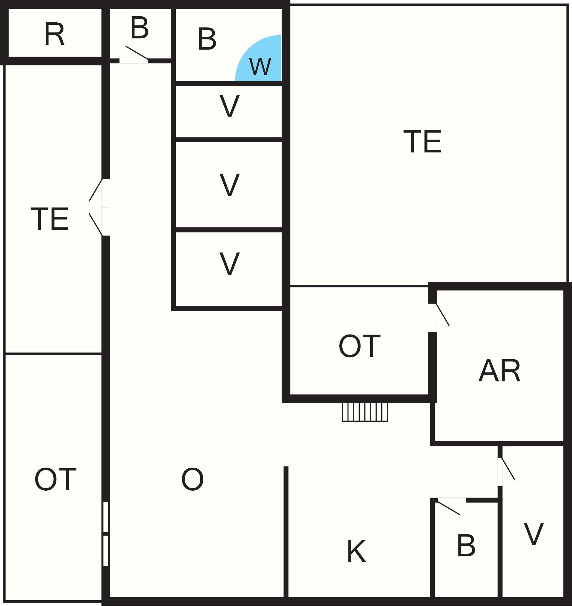 1 Opholdsstue: (1DO), brændeovn, radio, dvd-afspiller, tv, parabol, høj stol