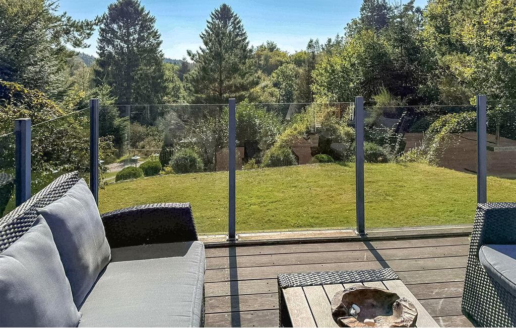 Flot renoveret og veludstyret sommerhus med pæn og lys møblering. Huset er beliggende på en skrående grund med smuk landskabelig udsigt, samt til mindre sø. Meget hyggeligt og idyllisk. Huset er indrettet med 3 gode soveværelser, det ene med udgang til terrassen. Stor sydvendt træterrasse. Området er et veludbygget sommerhusområde omgivet af flot natur med både store og små træer, buske mm. 5 min. i bil og du er ved en af området mest populære sandstrande, I bor nær indkøbsmuligheder og flere spisesteder.