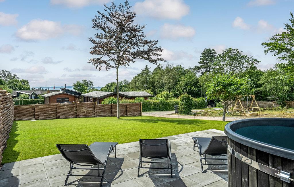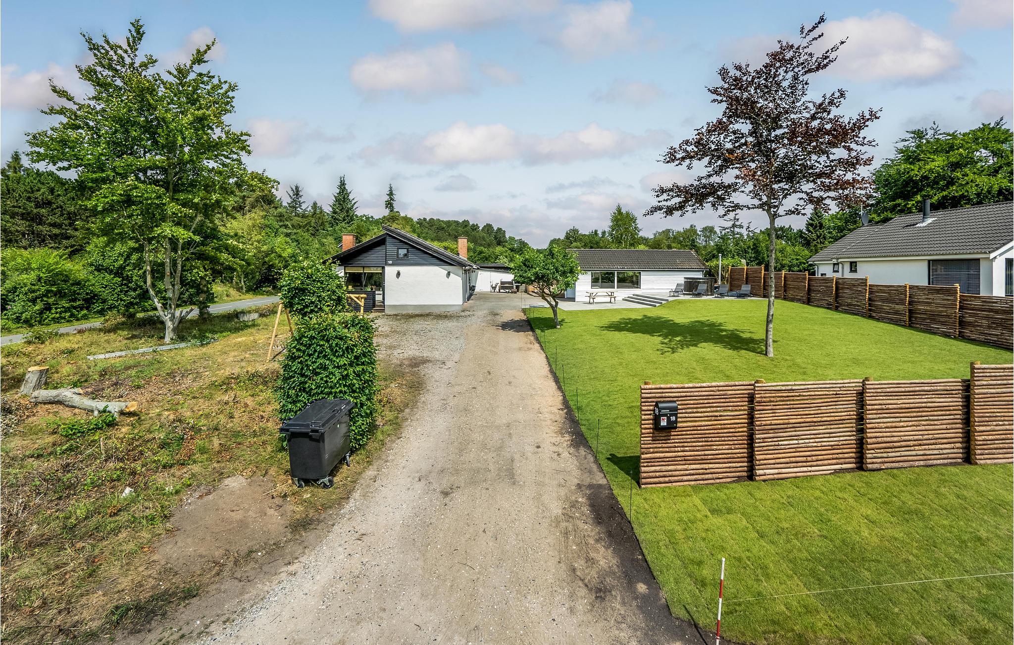 Udendørs kan I vælge mellem en masse sjove aktiviteter. Slå jer ned ved bålpladsen, hvor I kan riste skumfiduser med børnene, eller slap af på terrassen mens de mindste hviner af fryd på gyngerne eller bygger sandslotte i sandkassen. Hvis skyerne trækker sig sammen, kan I sætte jer ind under halvtaget. Afslut dagen her med en afslappende tur i vildmarksbadet mens I nyder en kølig drink.