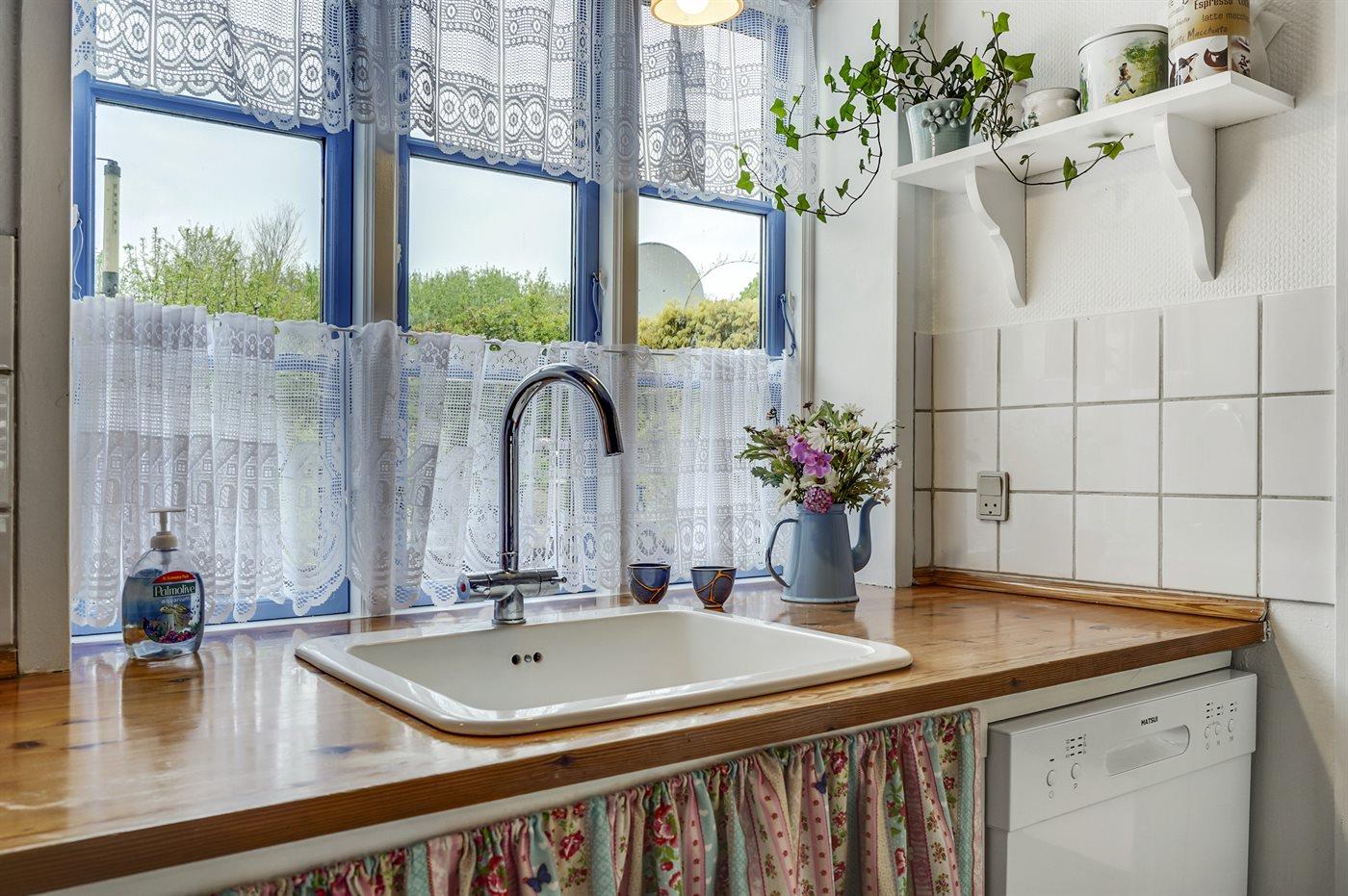 Køkkenet er udstyret med 1 køleskab. Der er 4 keramiske kogeplader, varmluftovn, mikrobølgeovn samt opvaskemaskine.
