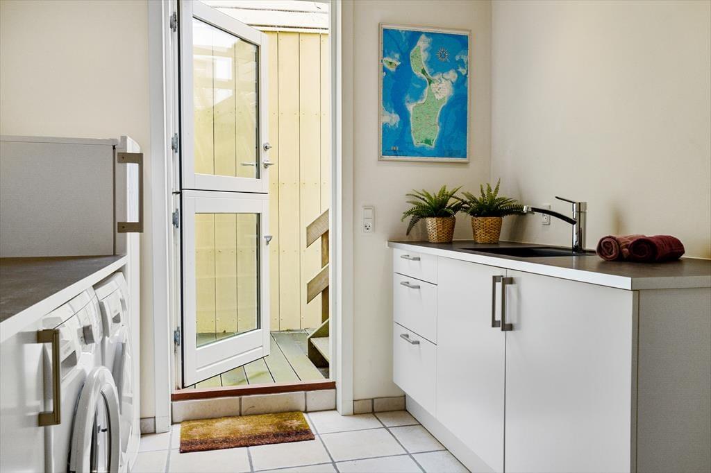 Ved soveværelserne er husets badeværelse, der har god plads og som resten af huset er det lyst og med gode faciliteter. I kan også få glæde af det praktiske bryggers, der fungerer som en ekstra entré til opbevaring af fx overtøj. Her er også mulighed for at vaske de lokale grøntsager, friskfangede fisk eller vaske sit tøj, så praktikken er helt på plads.