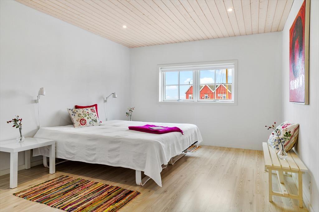 I stueetagen er der yderligere to store soveværelser, der begge er rummelige og lyse med en komfortabel dobbeltseng. Her er der også god plads til jeres ting og afslapning, og så kan du holde øje med livet i havnen helt tæt på.