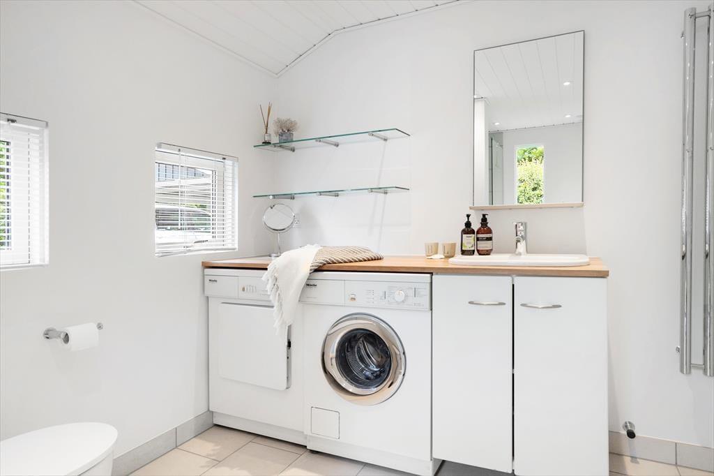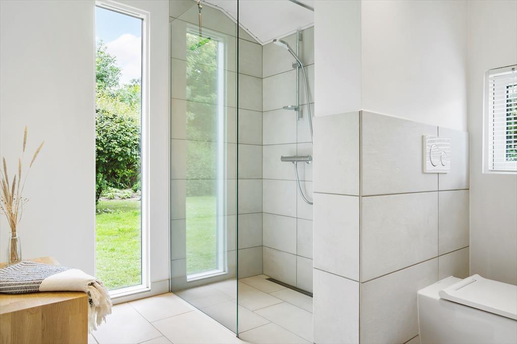 Det rummelige og lyse badeværelse er moderne, så også her er komforten helt i top.