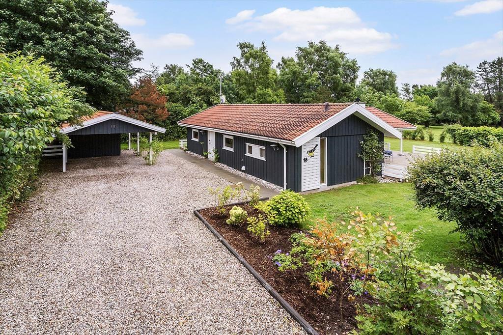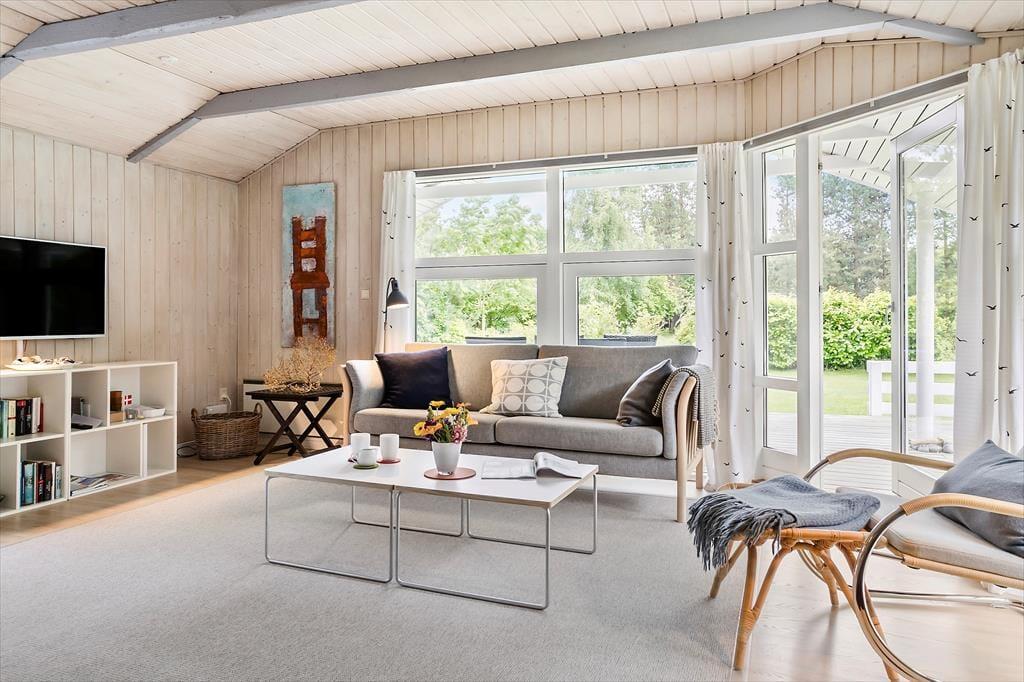 Dette sommerhus byder på både hygge og god plads til familien eller en lille gruppe venner. Huset har plads til 4 voksne, der kan glæde sig til mange gode timer sammen her. Husets samlingsrum er køkken-alrummet og stuen, hvor det åbne rum gør det muligt for jer altid at være sammen. Stuen er indrettet med lyse og komfortable møbler, så her kan man slappe helt af og nyde udsigten ud til haven via de store vinduer og terrassedøren. Fra terrassedøren træder du direkte ud på den dejlige overdækkede terrasse, og det giver ekstra god plads til at være sammen, når vejret er godt.
