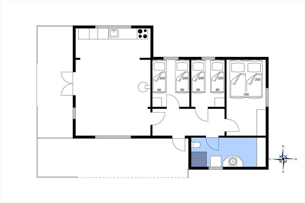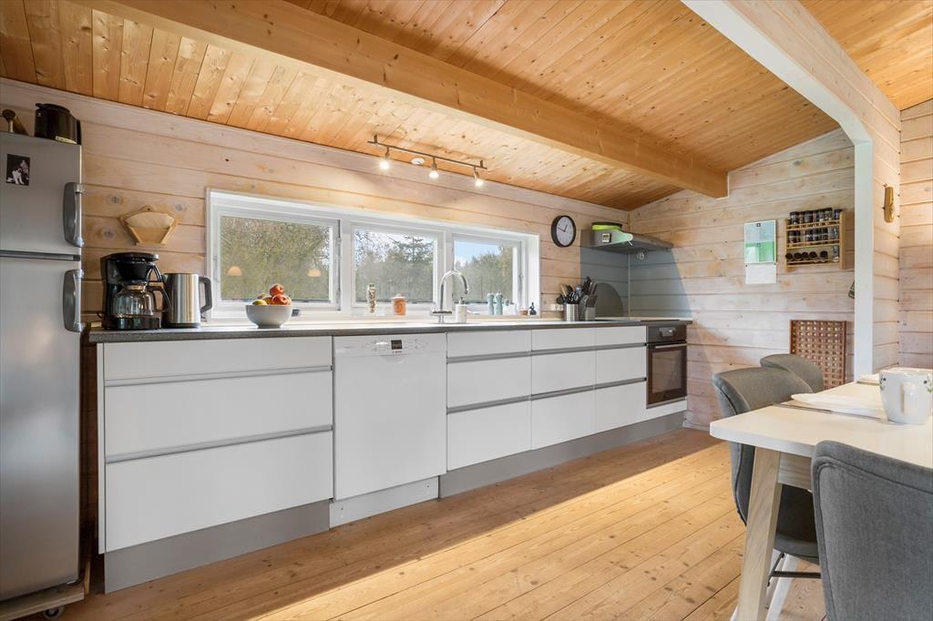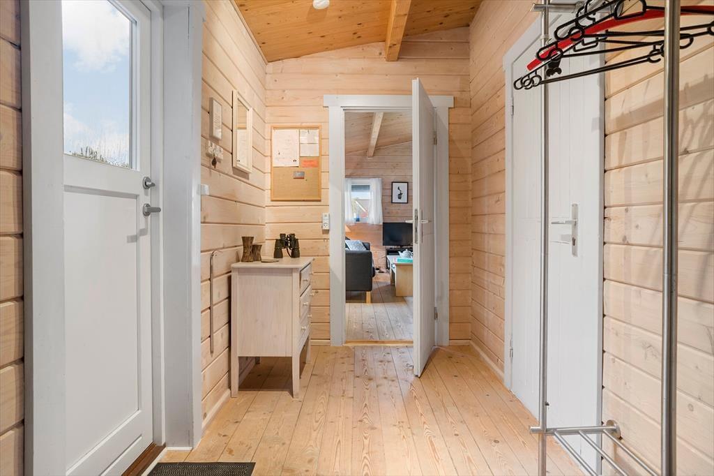 Sommerhuset byder på både hygge og god plads til familien eller en lille gruppe venner. Der er plads til 6 personer, som kan se frem til mange gode timer sammen. Hjerterummet er køkken-alrummet og stuen, hvor det åbne rum skaber mulighed for samvær. Stuen er indrettet med komfortable møbler, så I kan slappe helt af og nyde udsigten til haven gennem de store vinduer og terrassedøren.