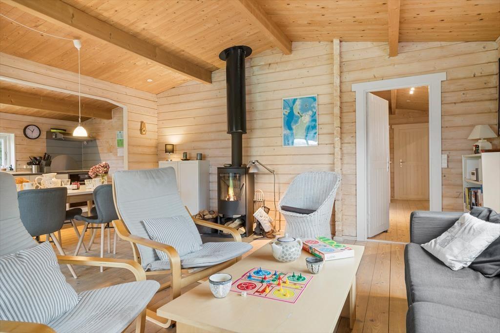 I kan naturligvis også tænde for TV’et eller hygge jer med brætspil eller en god bog i de bløde møbler foran brændeovnen – indbegrebet af sommerhushygge.