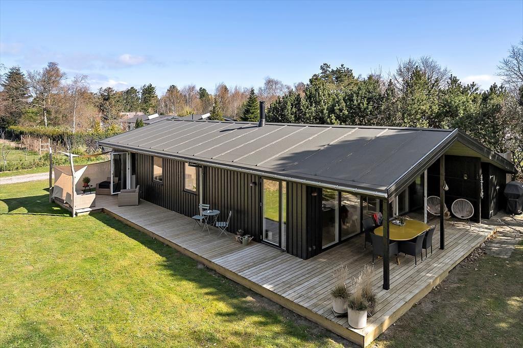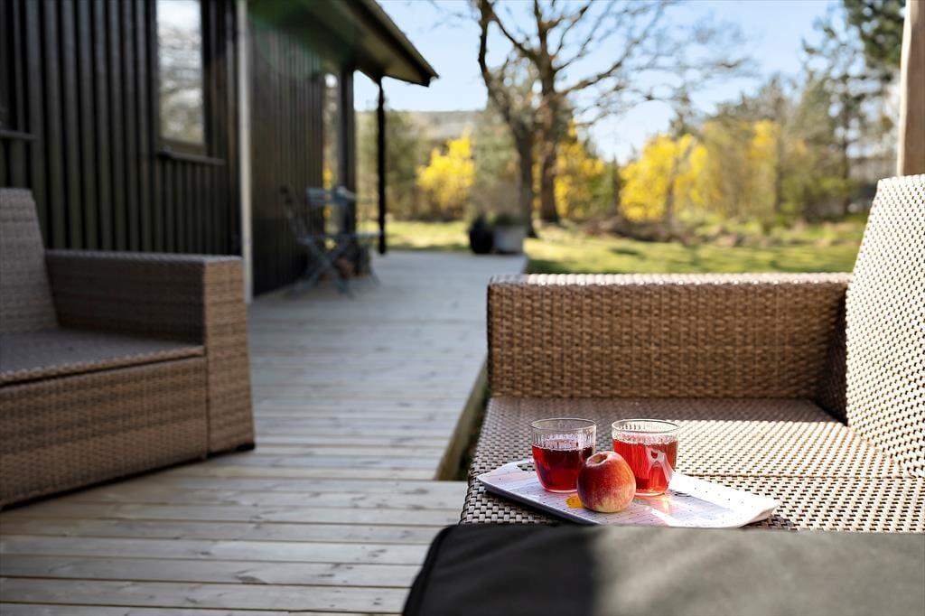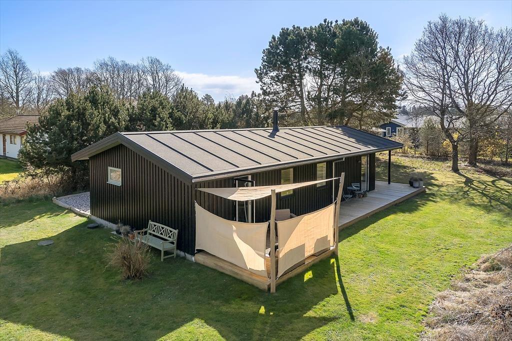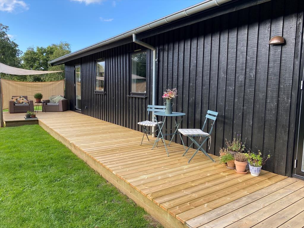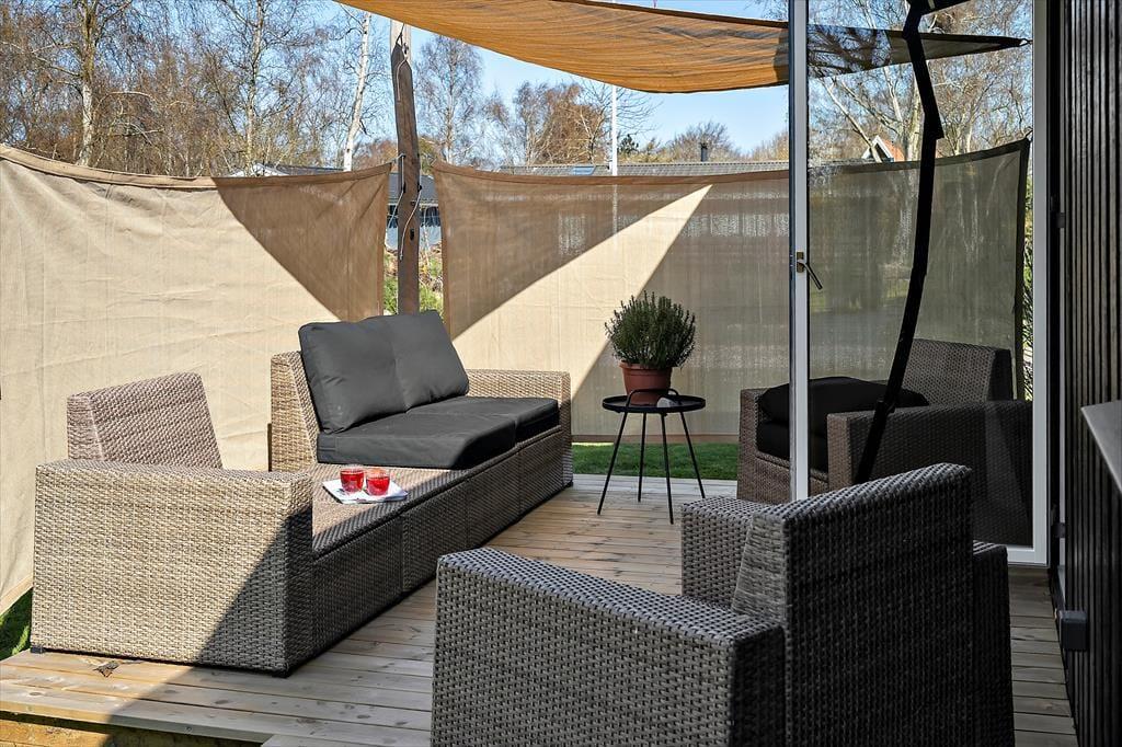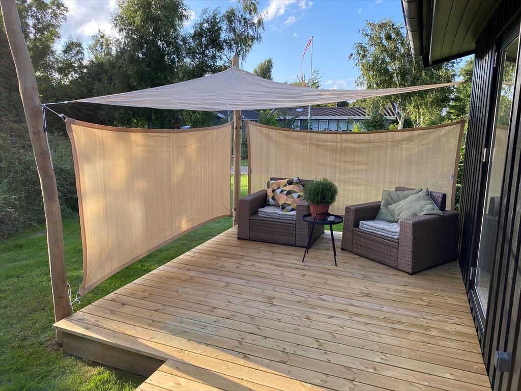 Den store, solrige terrasse er oplagt til ferie under åben himmel her kan I grille på gasgrillen, nyde dagens måltider eller bare læne jer tilbage med en god bog. Haven omkring huset er både grøn og indbydende, og et skønt område med solsejl giver behagelig skygge, når solen står højt. Efter en tur til stranden er det en fornøjelse at skylle sandet af under den udendørs bruser med varmt vand en luksuriøs detalje, der emmer af sommer og frihed.