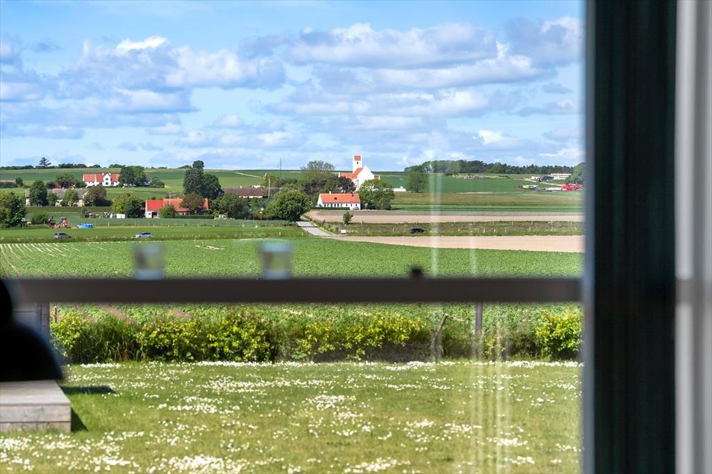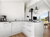 Køkkenet er åbent og har vinduer med udsigt til haven og den østvendte terrasse, hvilket giver et dejligt lysindfald og udsigt over det åbne landskab. Rundt om spisebordet er der god plads til, at I alle kan nyde måltiderne sammen. Når vejret tillader det, kan I via havedøren gå direkte ud på terrassen og spise under åben himmel.