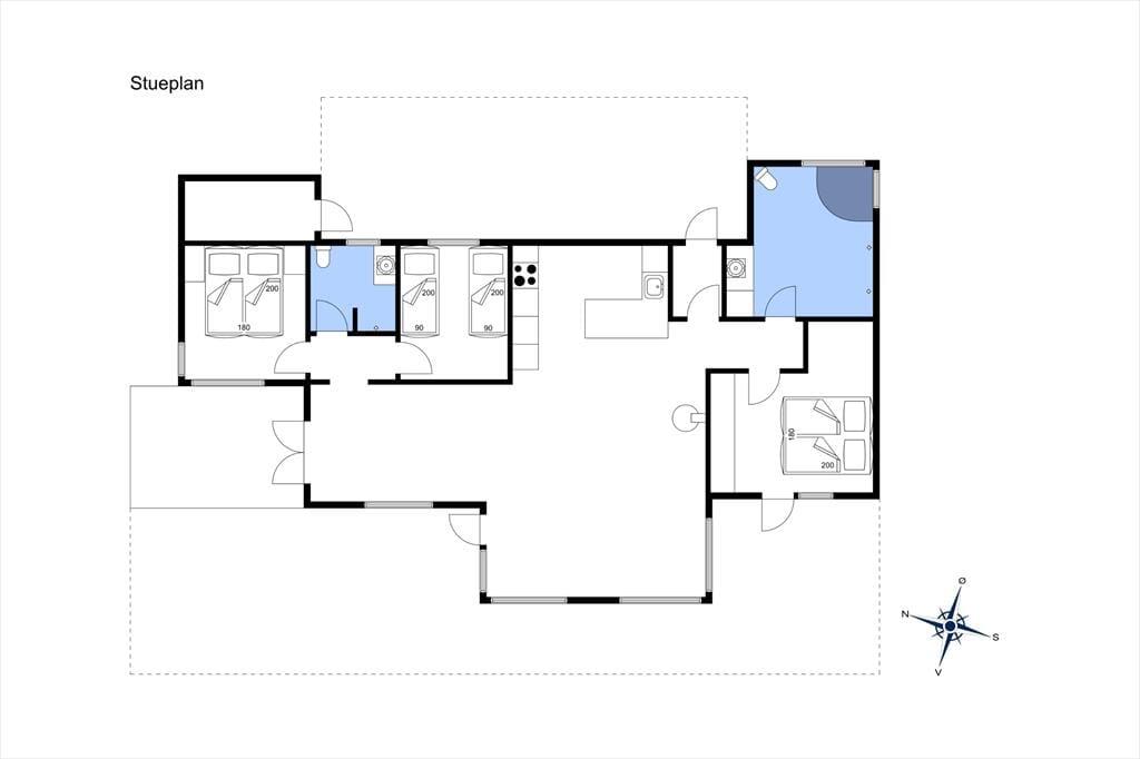 Sommerhuset har tre gode soveværelser med dobbeltsenge samt et værelse med to enkeltsenge. Derudover et dejligt anneks med dobbeltseng, alle værelser har opbevaringsplads.