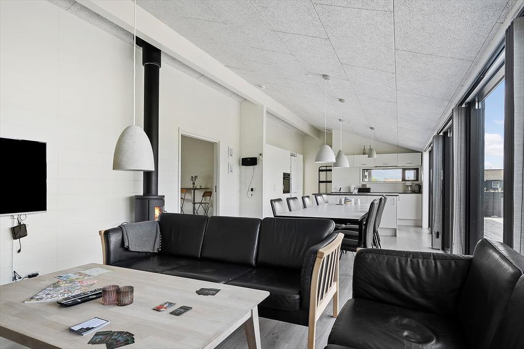 I stuen kan du slappe af med en god bog eller tænde for tv’et efter en dag fyldt med oplevelser på øen. Det åbne køkken er fuldt udstyret og klar til at imødekomme dine kulinariske eventyr. Designet skaber en behagelig forbindelse mellem madlavning og samvær, så du nemt kan være en del af samtalen med familie eller venner, mens maden tilberedes. Sommerhuset har fem gode soveværelser med dobbeltsenge, og alle værelser har opbevaringsplads.