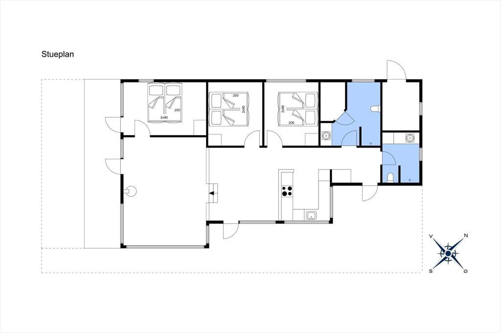 Sommerhuset har tre gode soveværelser alle med dobbeltsenge. Alle værelser har opbevaringsplads.