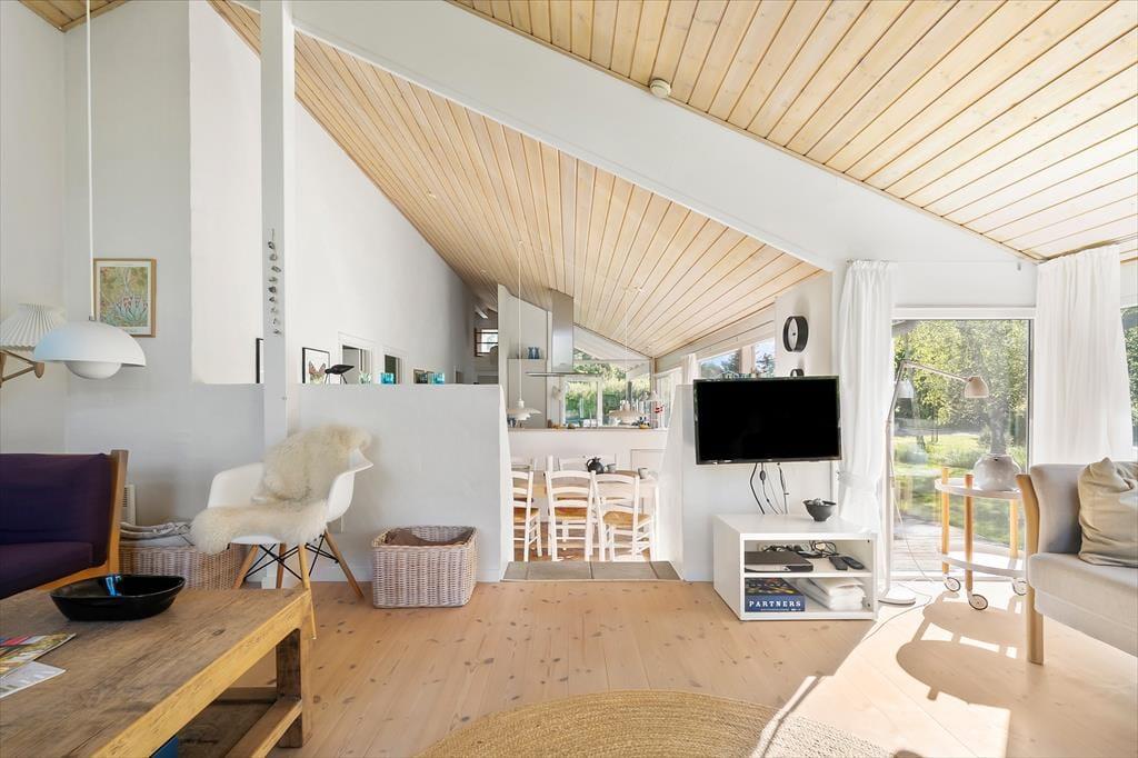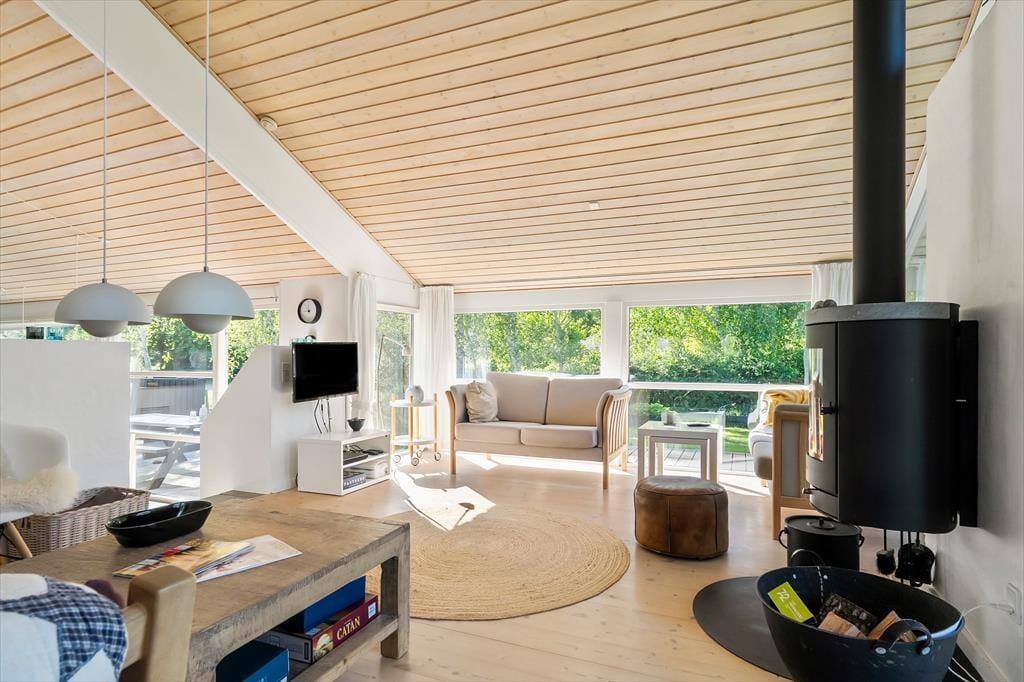Huset er indrettet i gennemført hyggelig stil med lyse trævægge og -lofter og en stemning, der emmer af strand og natur. Her er sørget for både nødvendige og ekstra komfortable faciliteter – I skal blot glæde jer til en dejlig ferie i Mårup på Samsø.