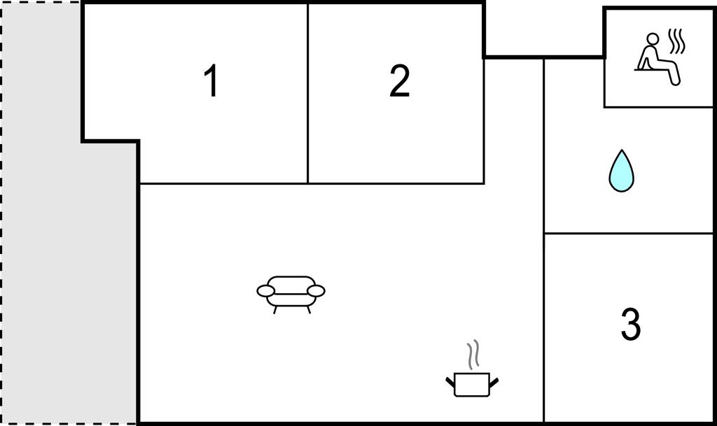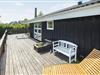 Træd direkte fra stuen ud på den rummelige terrasse, hvor komfortable liggestole indbyder til afslappende stunder med solbadning. Kun få skridt fører jer til en god badestrand, hvor I kan nyde havet og solen.