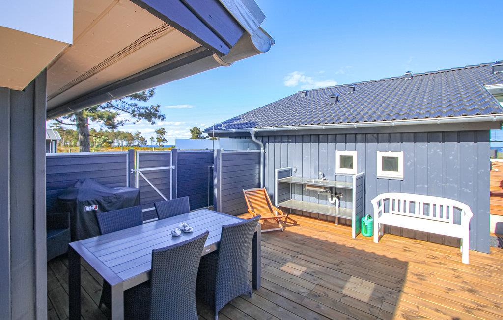 Her kan I tilbringe jeres ferie i en elegant atmosfære direkte på stranden. Det moderne sommerhus er lyst og indbydende indrettet og danner en æstetisk ramme om jeres ferie. Sofalandskabet inviterer jer til at tilbringe hele dage med at hvile og slappe af. Sæt jer til rette i de behagelige puder, hvor blikket vandrer ud over havet og horisonten gennem det store panoramavindue. Nyd jeres eftermiddagskaffe i solen på terrassen, hvor I også har en fantastisk udsigt. Afslut jeres dejlige stranddage med en tur i saunaen.