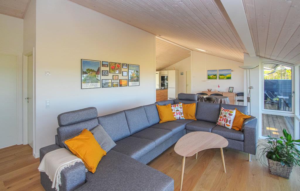 Elegant sommerhus med havudsigt, sauna og direkte adgang til stranden på Samsø.
