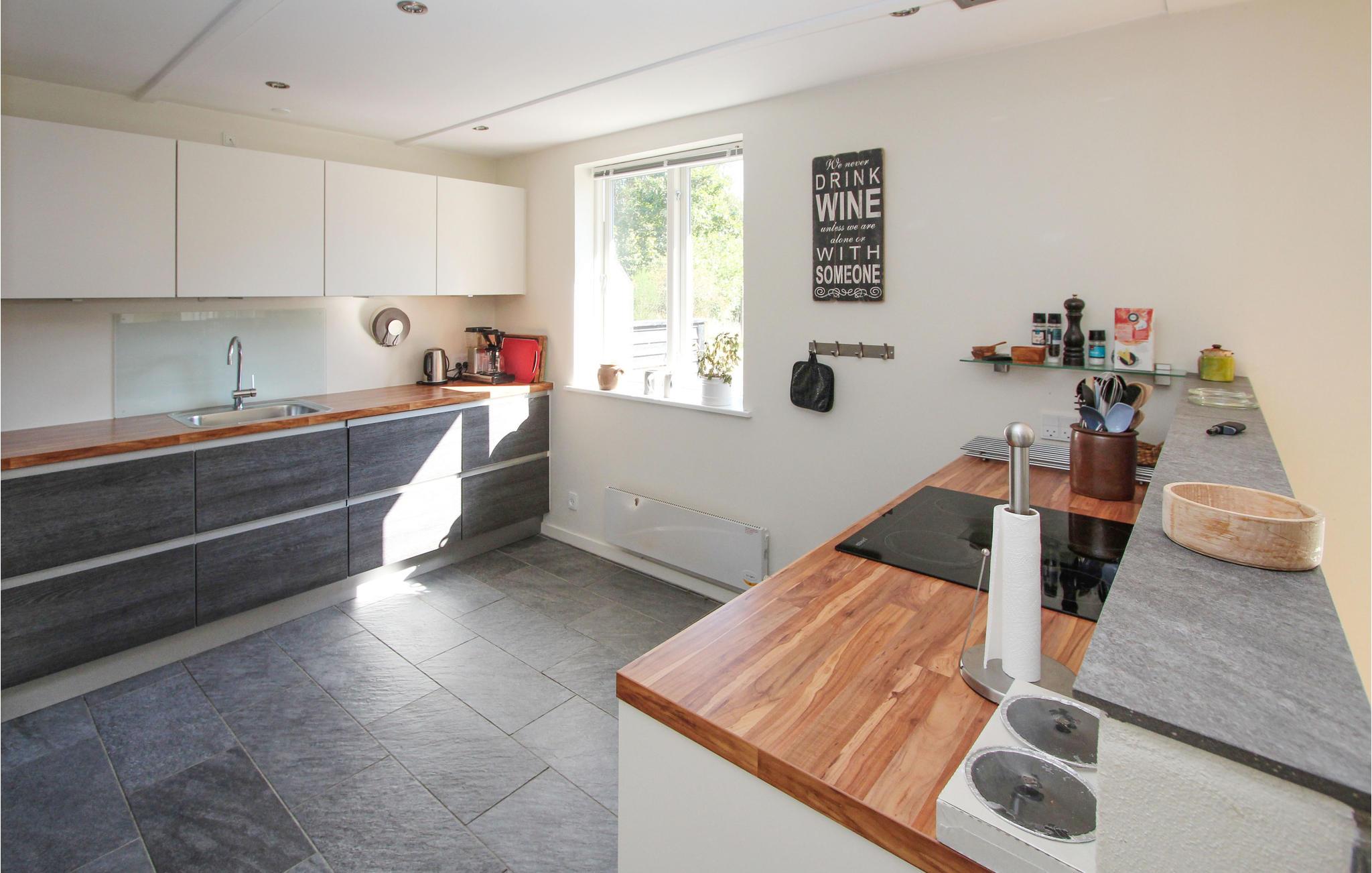 Feriehuset er moderne og hyggeligt indrettet og byder jer hjerteligt velkommen. Der er flere hyggelige hjørner, hvor I kan slappe dejligt af enten alene eller sammen. Vinduer fra gulv til loft sørger for masser af lys i værelserne og giver jer mulighed for at nyde den fantastiske udsigt over landskabet fuldt ud. I det stilfulde køkken er det sjovt at lave mad sammen, og om aftenen kan I slappe af i saunaen og slutte dagen af med en drink på terrassen.