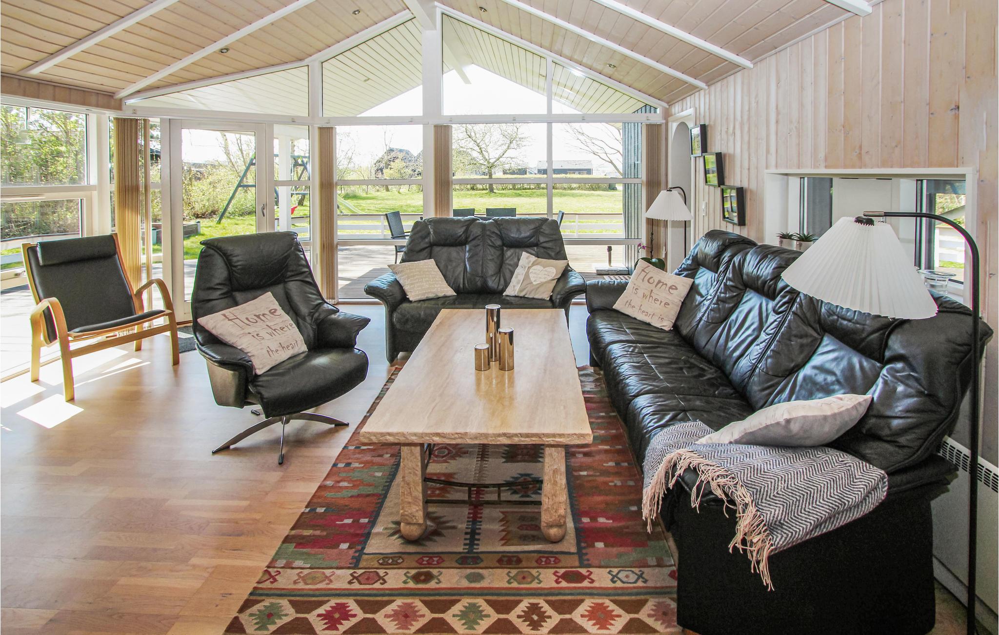 Søger I et hyggeligt feriehus med plads til hele familien? Så er dette lyse og børnevenlige feriehus med sauna måske lige netop det rigtig for jer!