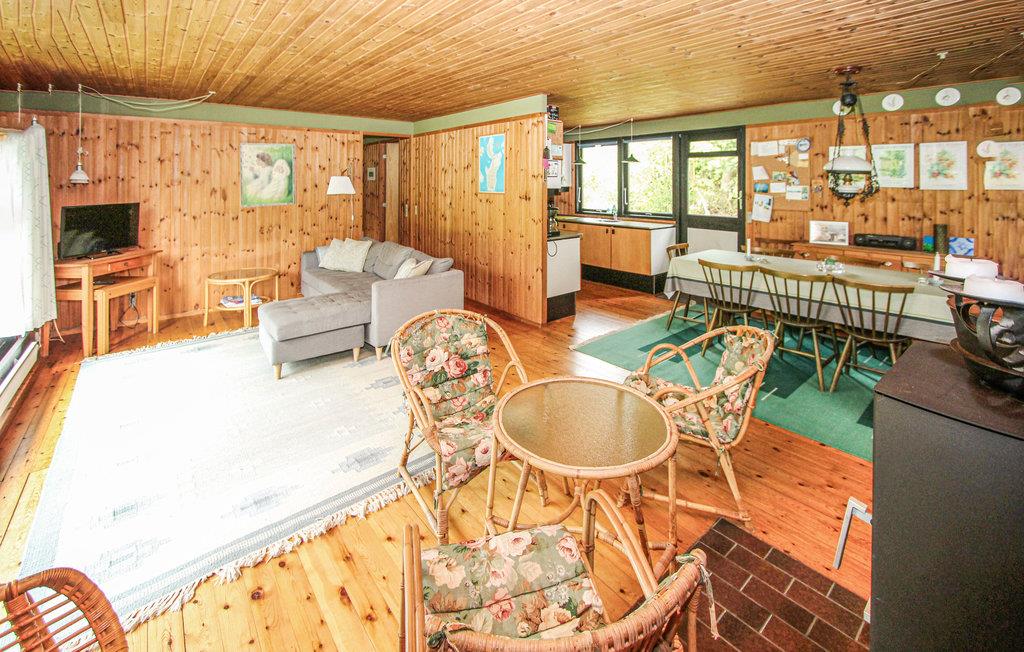 Velkommen i dette hyggelige hus, hvis trævægge og traditionelle sommerhusindrening skaber en rustik og behagelig atmosfære, som I straks vil føle jer hjemme i. Hyggelige timer omkring middagsbordet, højtlæsning og sjove spilleaftener - her har I mange muligheder for at samle store og små i stuen. Mens brændeovnen knitrer i baggrunden, kan I nyde en varm kop kakao og snakke om dagens oplevelser og højdepunkter. Udenfor kan I sidde i læ på terrassen, spise et sommerligt måltid eller afslutte dagen i fred og ro med udsigt til haven. Til sådan en ferie hører naturligvis også strand, sol og hav. Fra sommerhuset er I nede på stranden på få minutter, hvor I kan se frem til timevis af badesjov med hele familien.