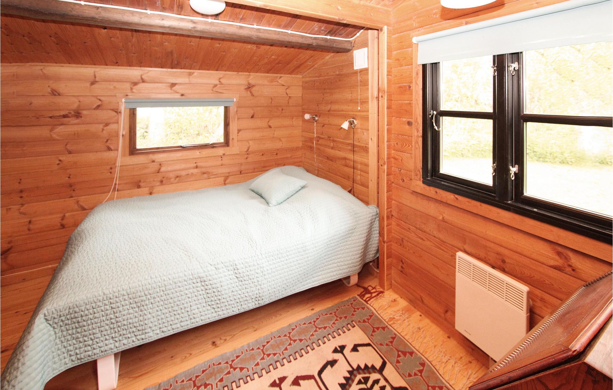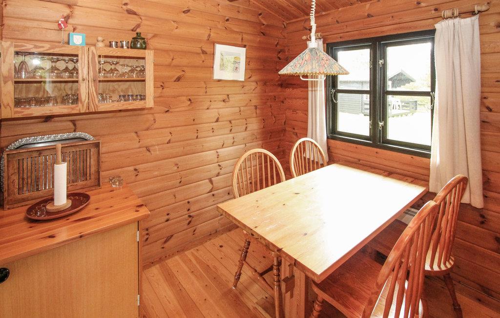 Glæd jer til at opleve en skøn ferie i den charmerende bjælkehytte med mange fordele. Den særlige konstruktion skaber en yderst hyggelig atmosfære. I stuen er sofaerne placeret således, at I kan nyde den bedste udsigt over den omkringliggende grønne natur.