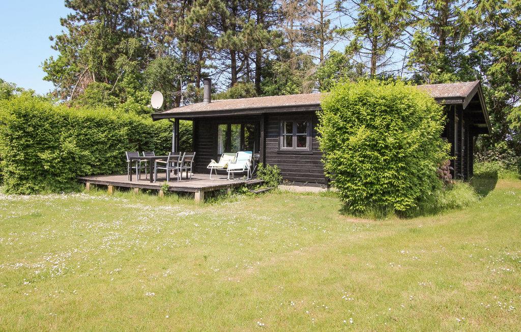 Charmerende bjælkehus nær stranden på Samsø med terrasse og brændeovn for en hyggelig ferieoplevelse.