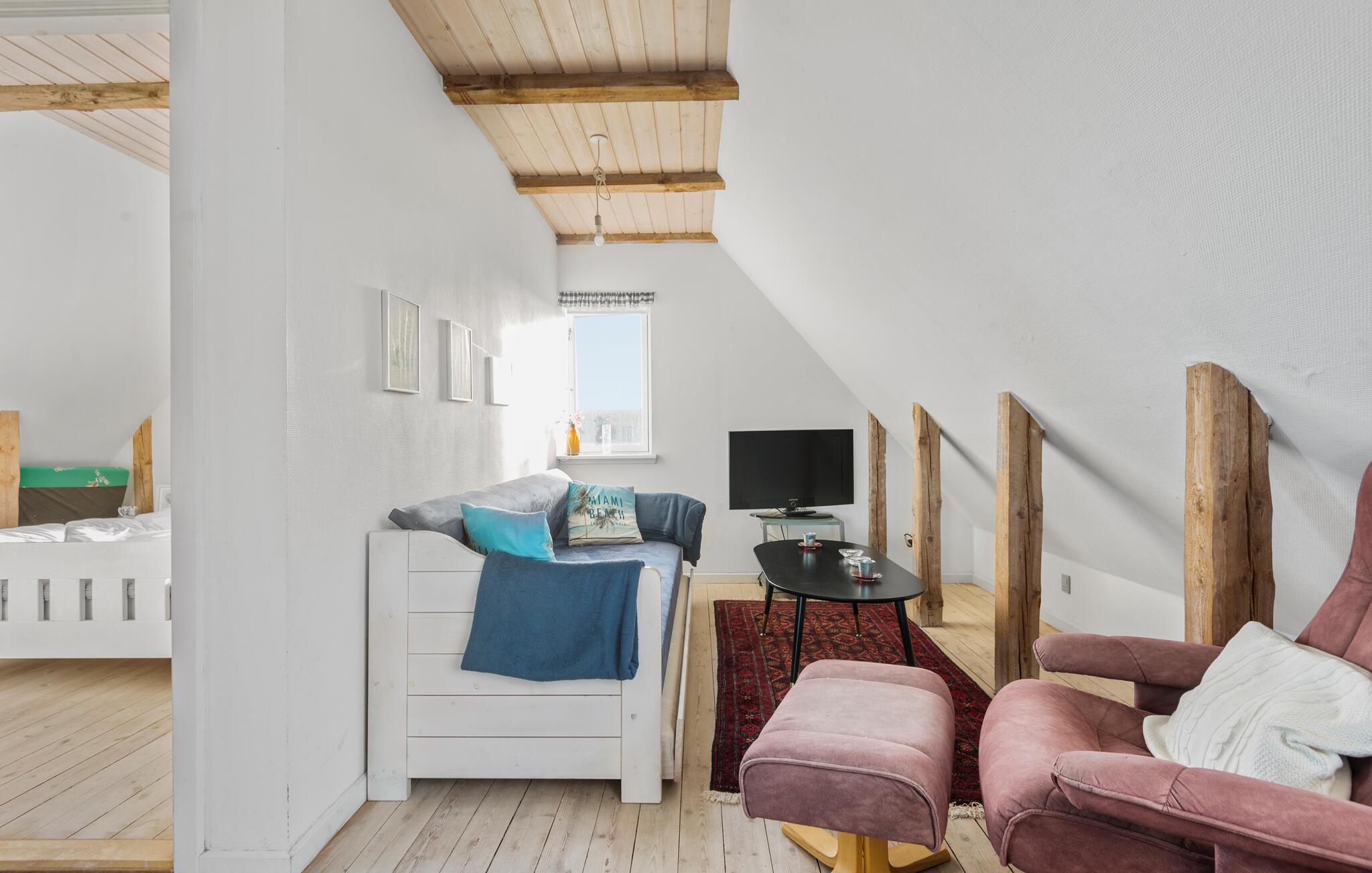 I kan se frem til nogle skønne feriedage på Mandø, hvor I kan opleve Vadehavets magiske natur tæt på. Huset bliver jeres lille oase, hvor I kan samle kræfter til nye eventyr. Boligen er indbydende og funktionel med fine træelementer, der understreger villaens historie. Dæk op til dagens måltider ved spisebordet og nyd lyset fra vinduerne. Når I vender hjem fra dagens eventyr, kan I hygge jer med brætspil og bøger i de bløde møbler.
