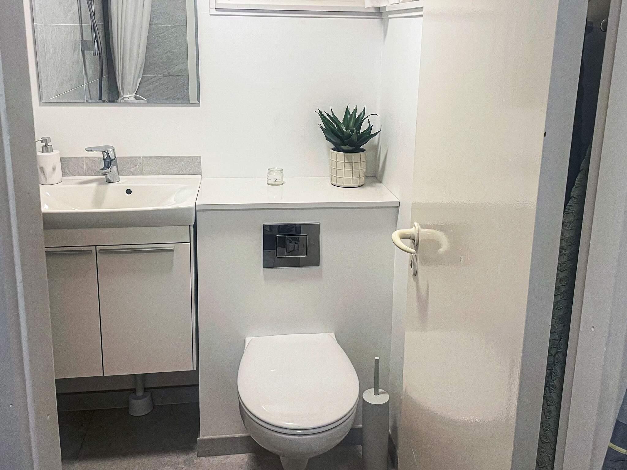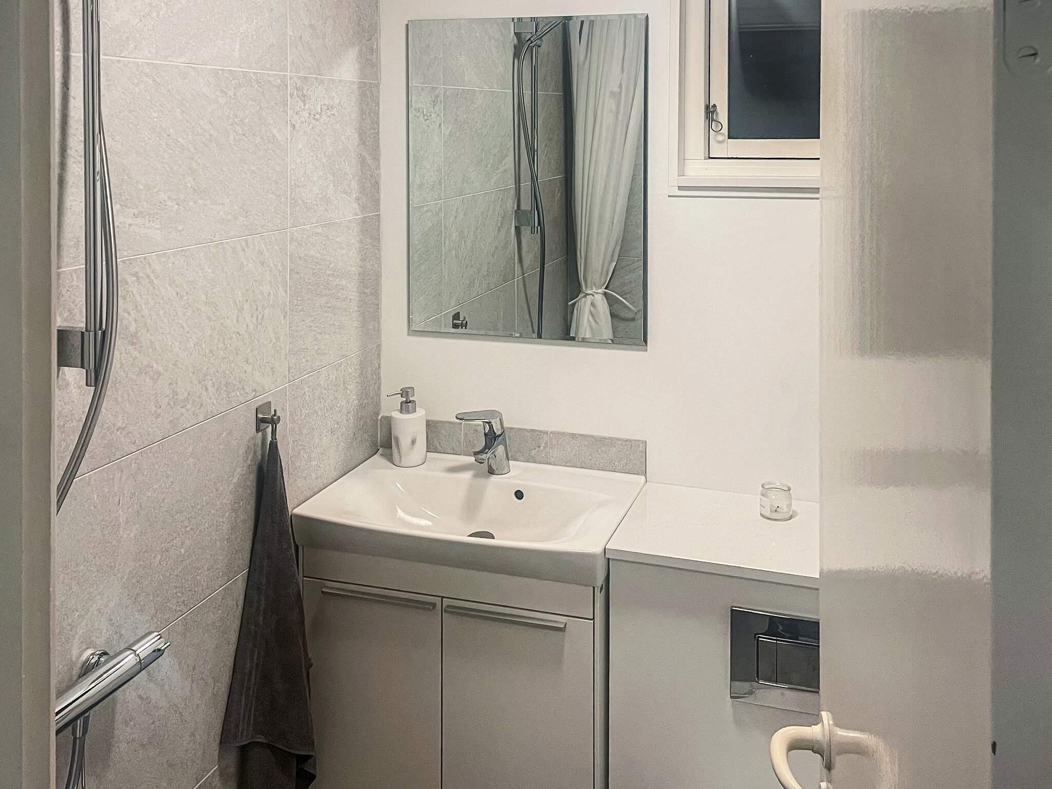 Bad/wc: Vaskemaskine, wc, håndvask, bruseniche, gulvvarme