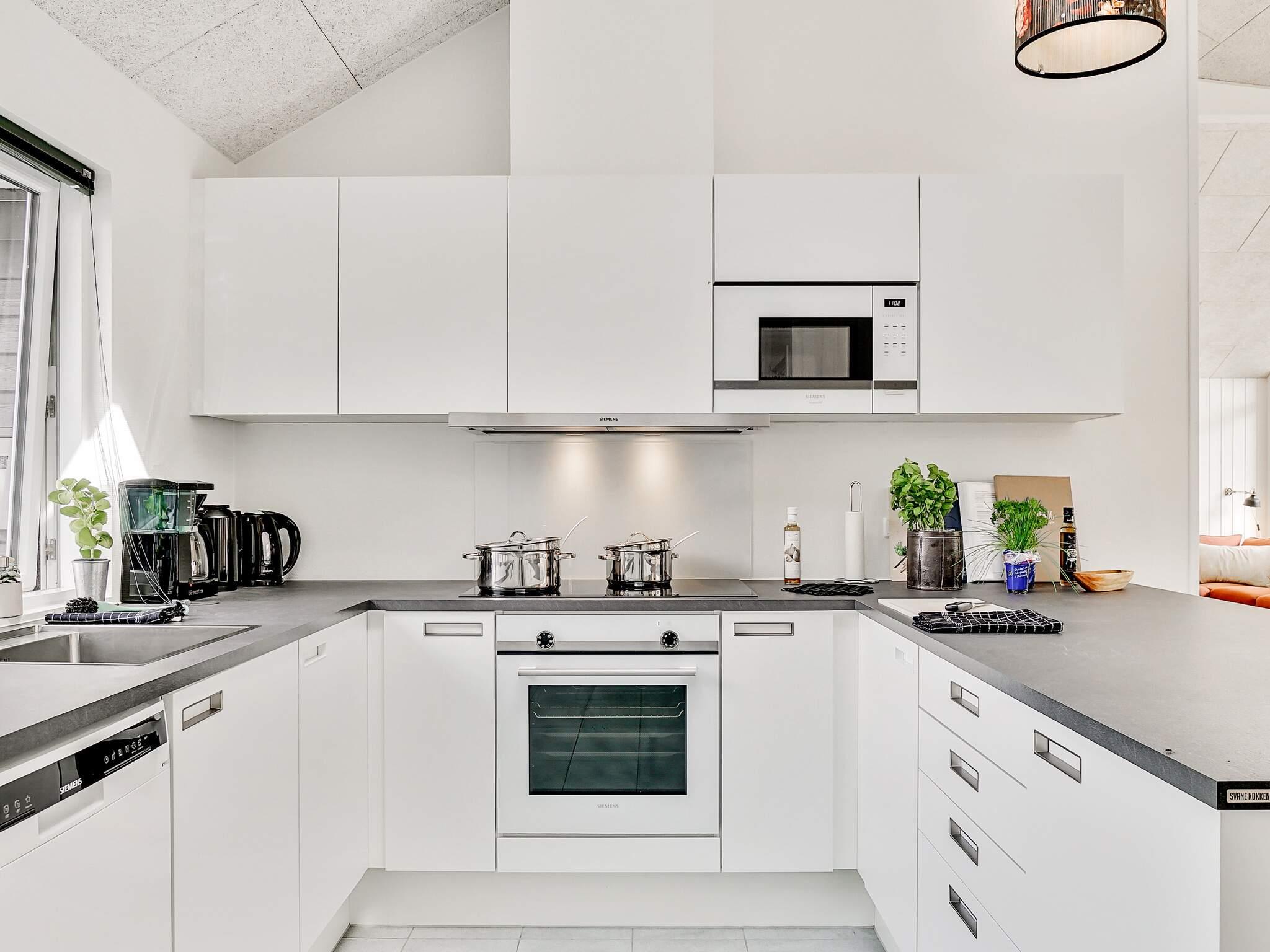 I husets midte finder I det åbne køkken/alrum. Køkkenet er veludstyret med god plads til den helt store madlavning. Foran køkkenet er der plads til alle ved det lange spisebord, så hele flokken kan nyde en fælles middag.