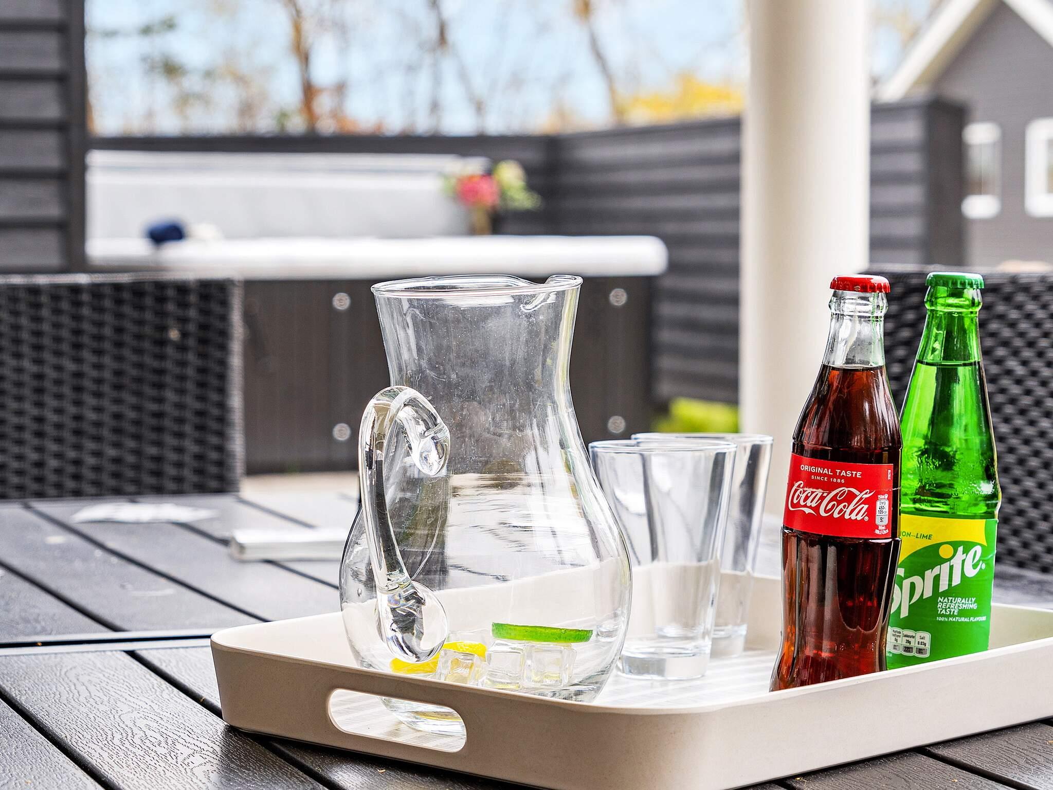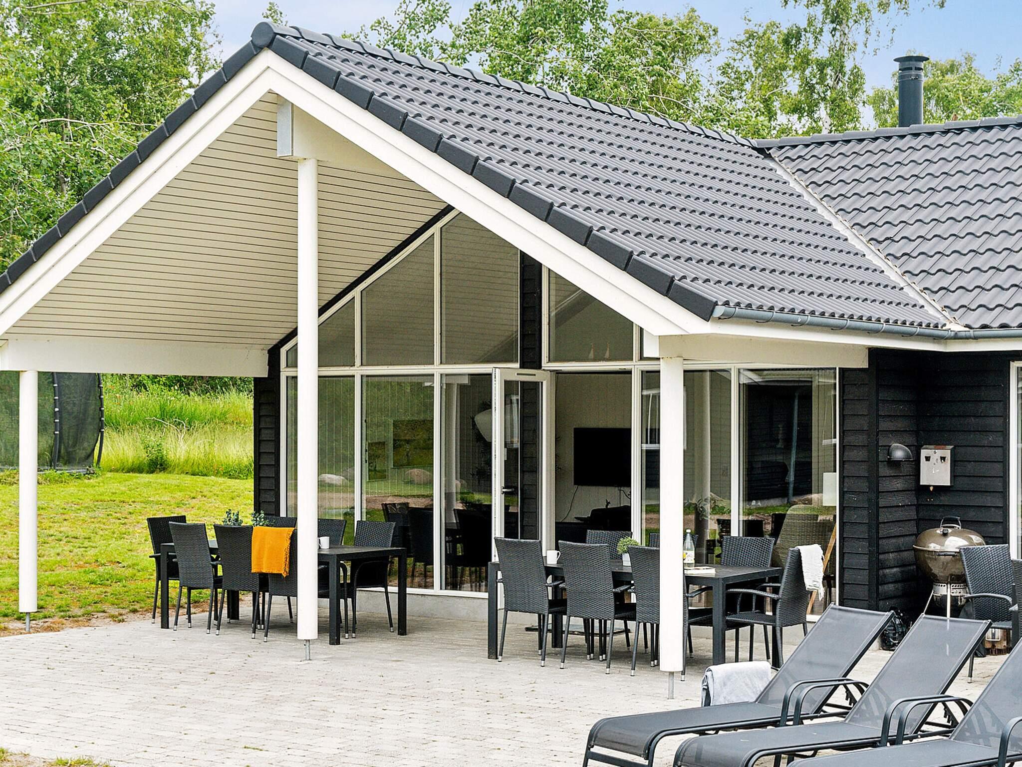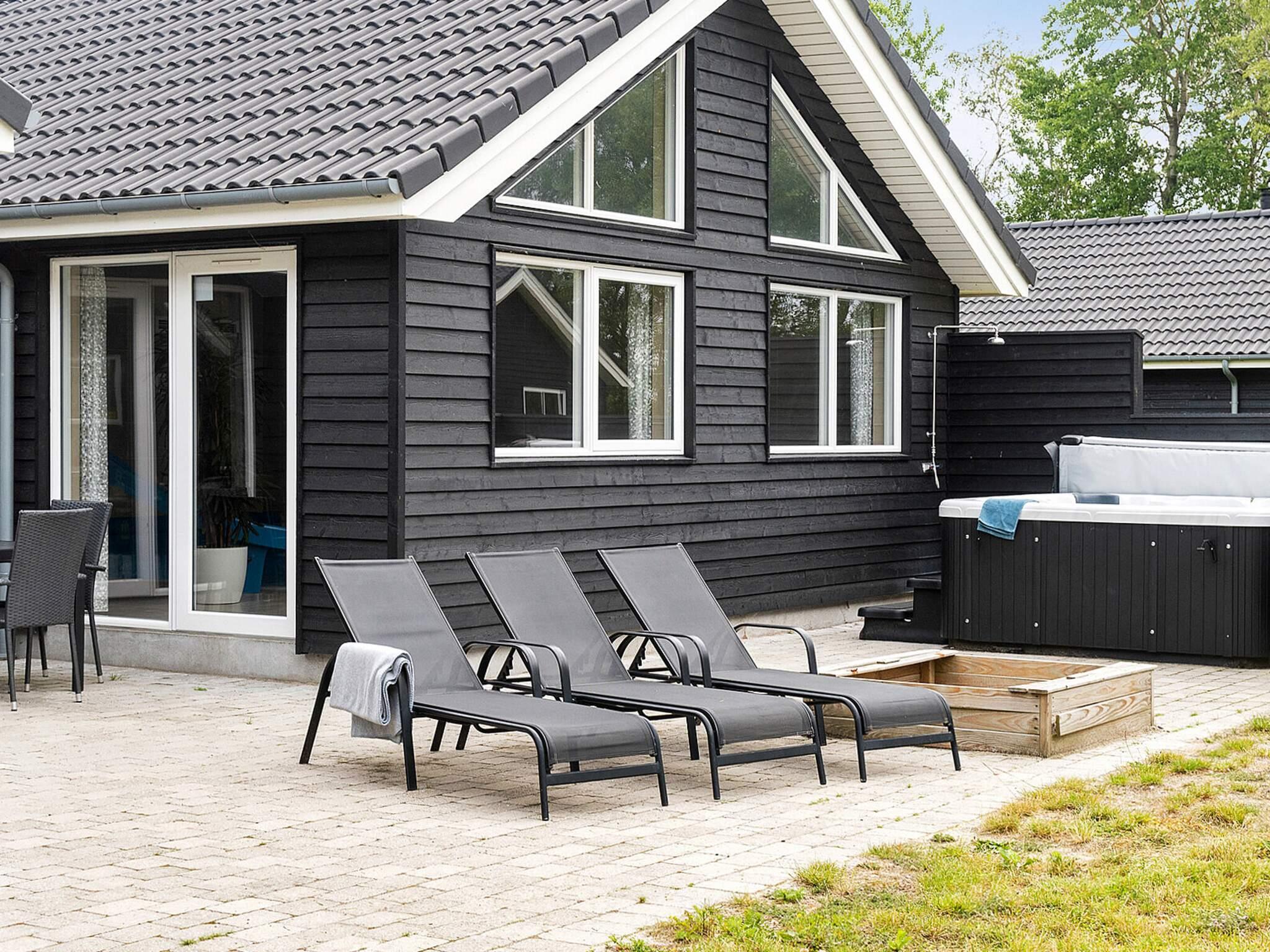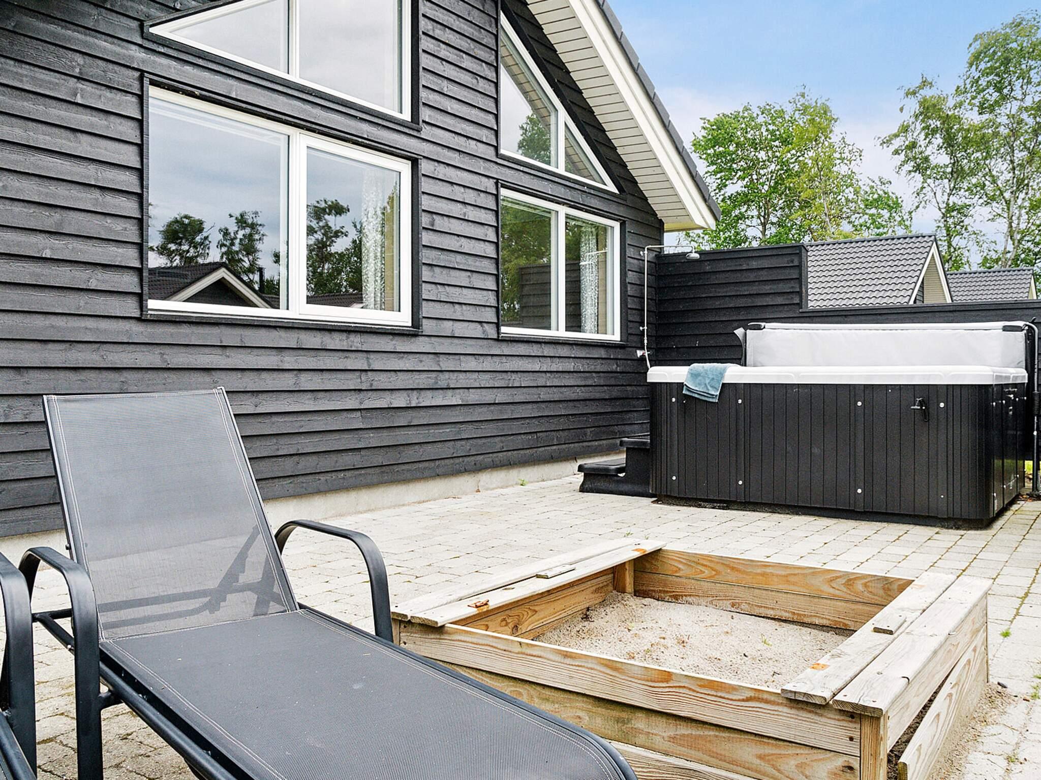Der er en delvist overdækket terrasse, hvor maden kan tilberedes på grillen og der er god plads til at alle kan hygge sig sammen. Til børnene er der gynge, sandkasse og trampolin (benyttes på eget ansvar/forsikring).