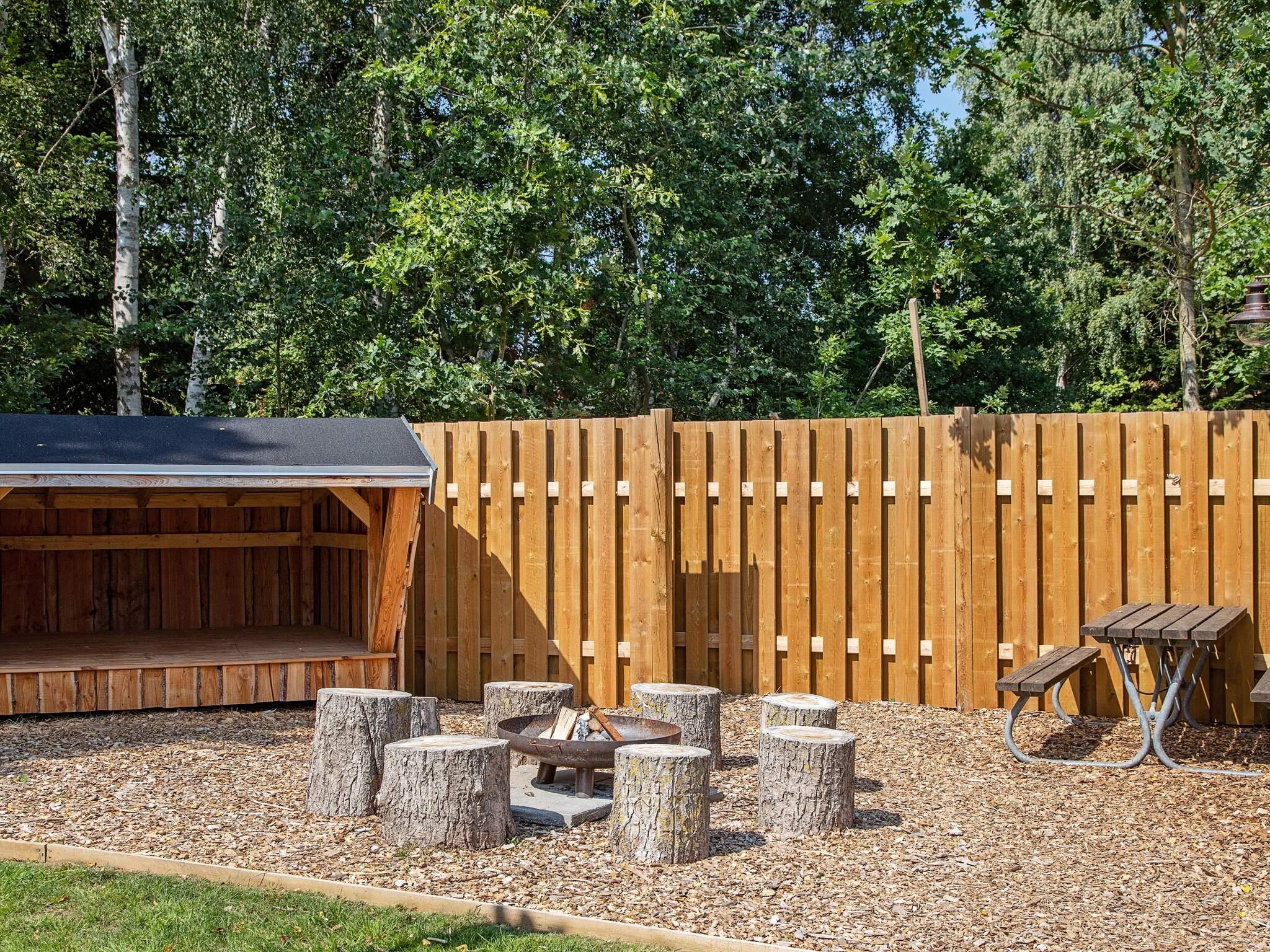 I haven finder I udendørs spabad til 5 personer, shelter, stort bålsted og udendørs bruser. Saunaen er i annekset.
