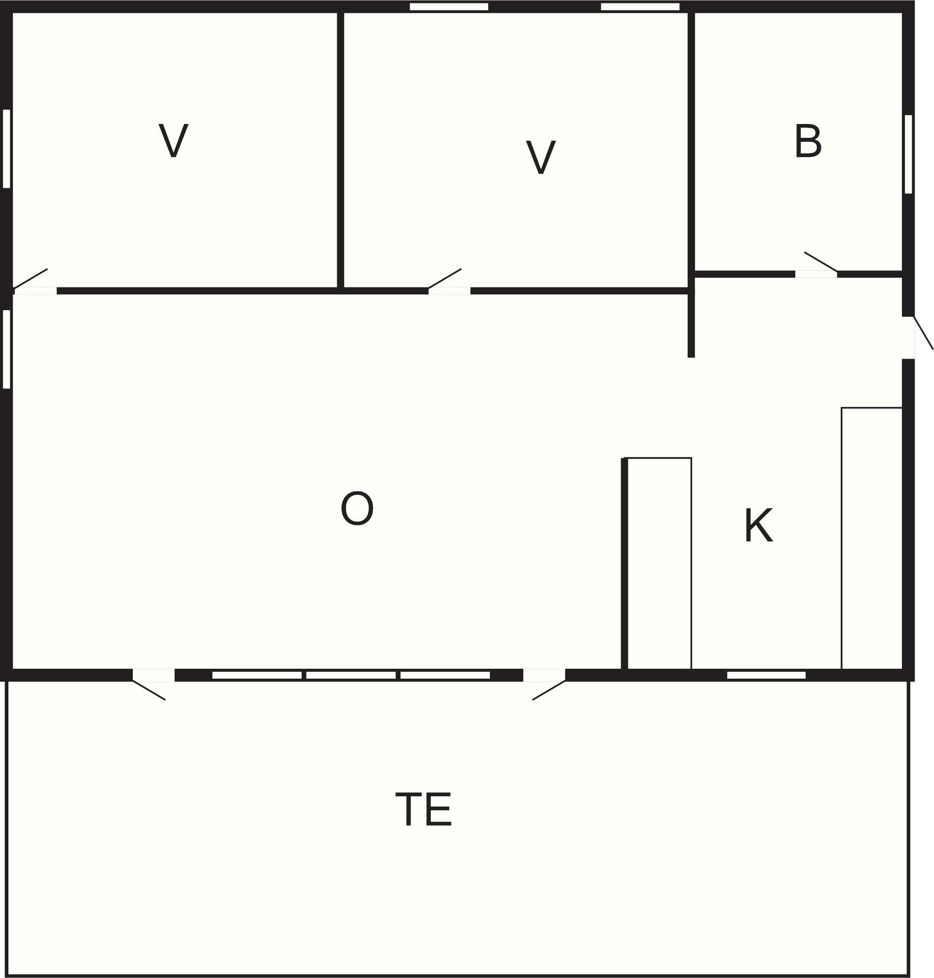 Værelse fordeling som følgende. 2 værelser med Dobbeltseng og en sovesofa i stuen til 1 person.