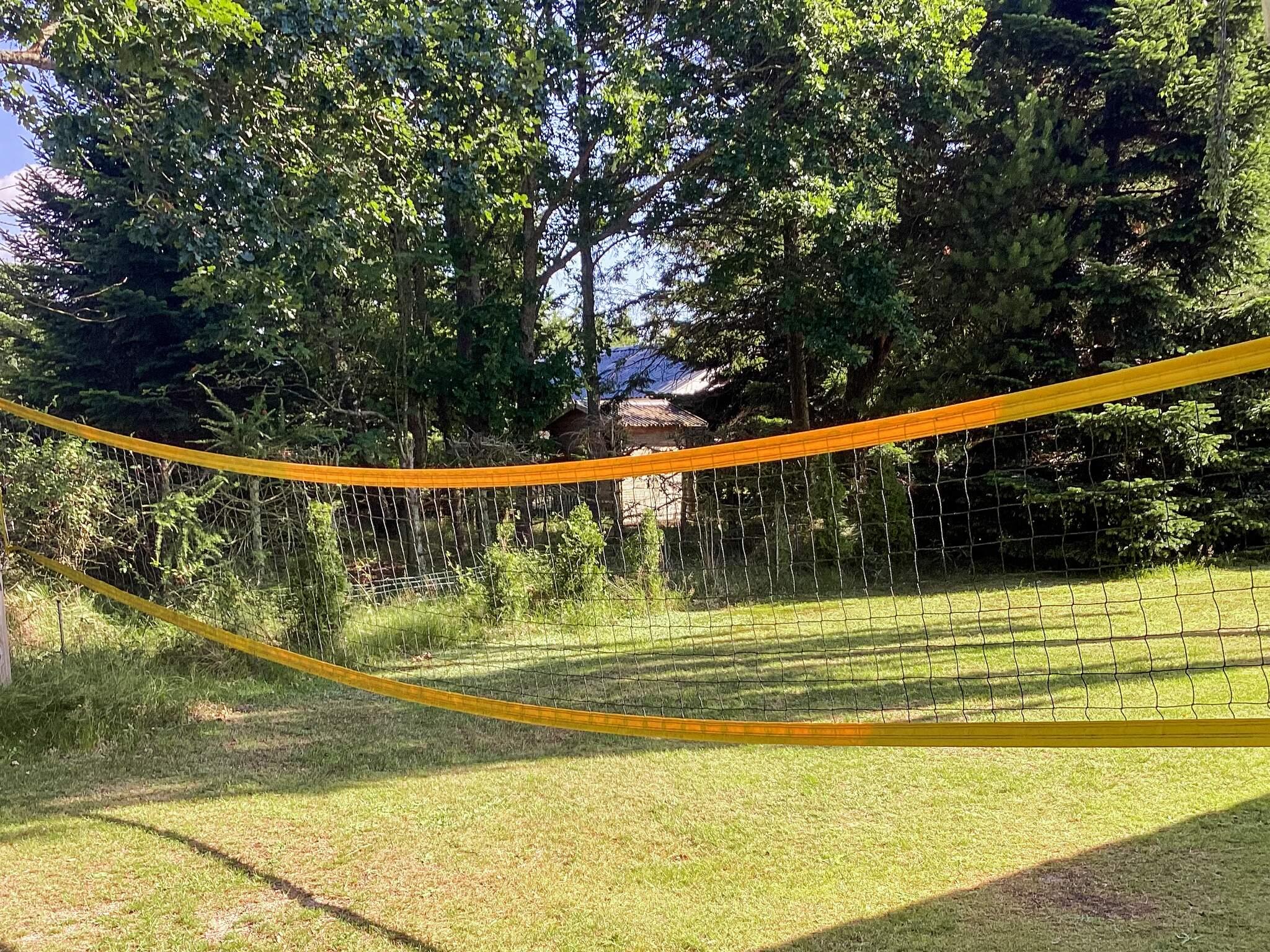 Udendørsområdet tilbyder en ugeneret have på knapt 1400 m2 med flere muligheder for udendørsaktiviteter. Der er bl.a. volleyball/badmintonnet, dart, fodboldmål, sandkasse og gyngestativ. Derudover er der to terrasser. Den mod sydøst fanger morgensolen, hvor morgenmaden kan indtages. Terrassen mod sydvest er overdækket og har en stenovnspejs/grill, hvor solen står på næsten hele dagen. Udlejes ikke til ungdomsgrupper.
