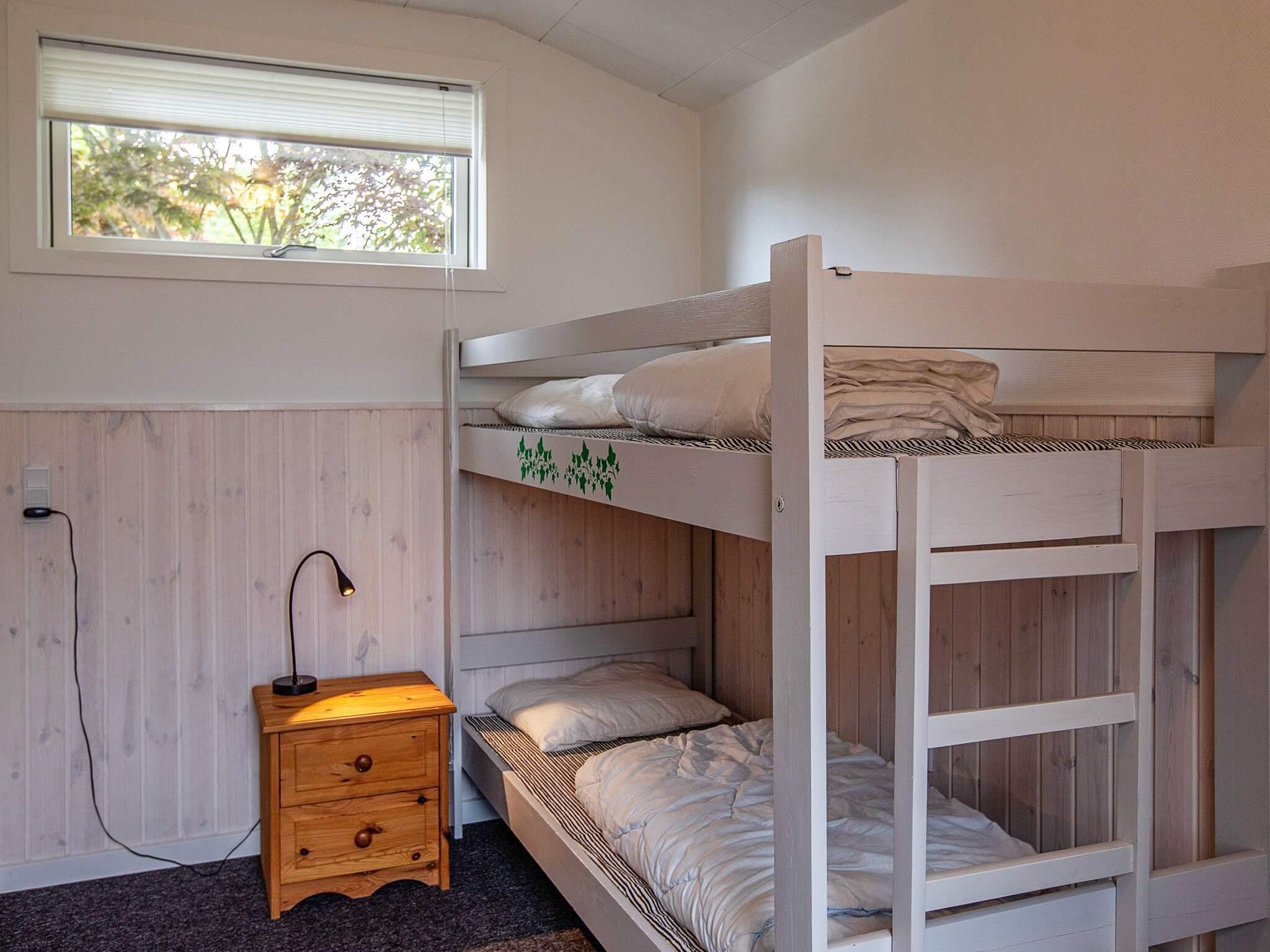 Huset er indrettet med åbent nyere køkken, spise- og opholdsstue. Der er 3 gode værelser, hvor fordelingen er 1 værelse med dobbeltseng, værelse med enkeltseng og 1 værelse med etagesenge. Badeværelset er oprindeligt, funktionelt og med el-gulvvarme. Der er ydermere vaskemaskine og tørretumbler i udhuset.