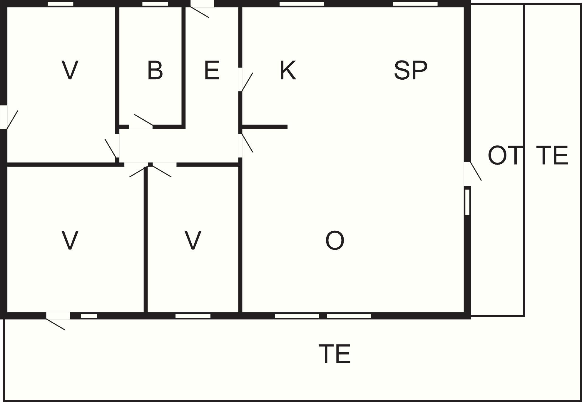 Huset har et lyst køkken og opholdsstue i åbent plan udstyret med moderne bekvemmeligheder, herunder komfur, opvaskemaskine og klimavenlig luft-til-luft varmepumpe. En hyggelig brændeovn tilføjer en varm og indbydende atmosfære, mens Wi-Fi og Chromecast er tilgængelige til at streame dine yndlingsprogrammer. Fra opholdsstuen går du ud på den delvist overdækkede terrasse, det perfekte sted til udendørs måltider og rolige aftener.