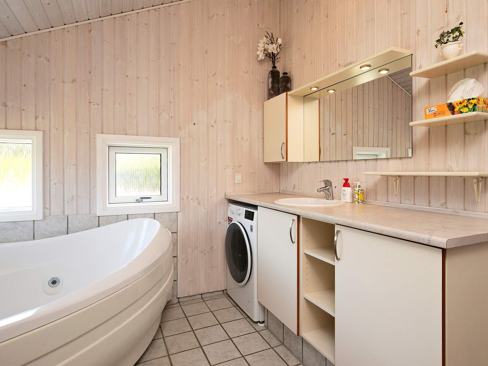Dette sommerhus er opført i 2003 og er ideelt for den store familie, som vil holde ferie sammen. Huset indeholder spabad, sauna samt et ekstra toilet. Vaskemaskine og tørretumbler er en 2 i 1 maskine, den står i badeværelset, hvor der er spabad og sauna. Til børnene er der PlayStation2 og legetårn. Der er 2 overdækkede træterrasser og en 40 m² åben træterrasse. Udlejes ikke til ungdomsgrupper.
