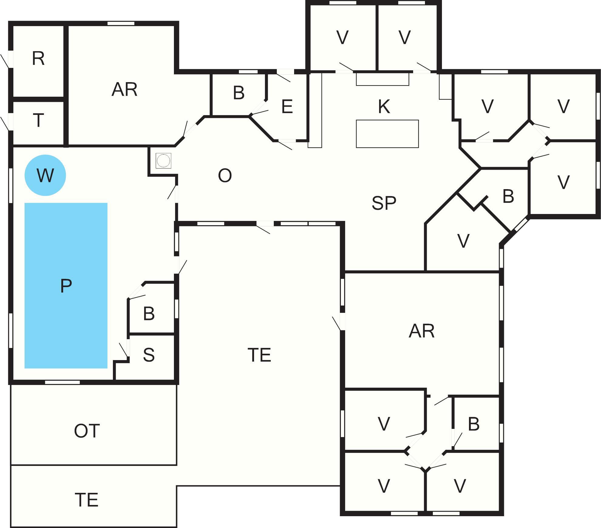 Poolområdet og aktivitetsrummet er et godt samlingspunkt for hele familien. Der er 4 badeværelser, hvoraf det ene er udstyret med boblende 4-6 personers spabad samt adgang til sauna. Der er selvfølgelig varme i gulvene på badeværelserne.