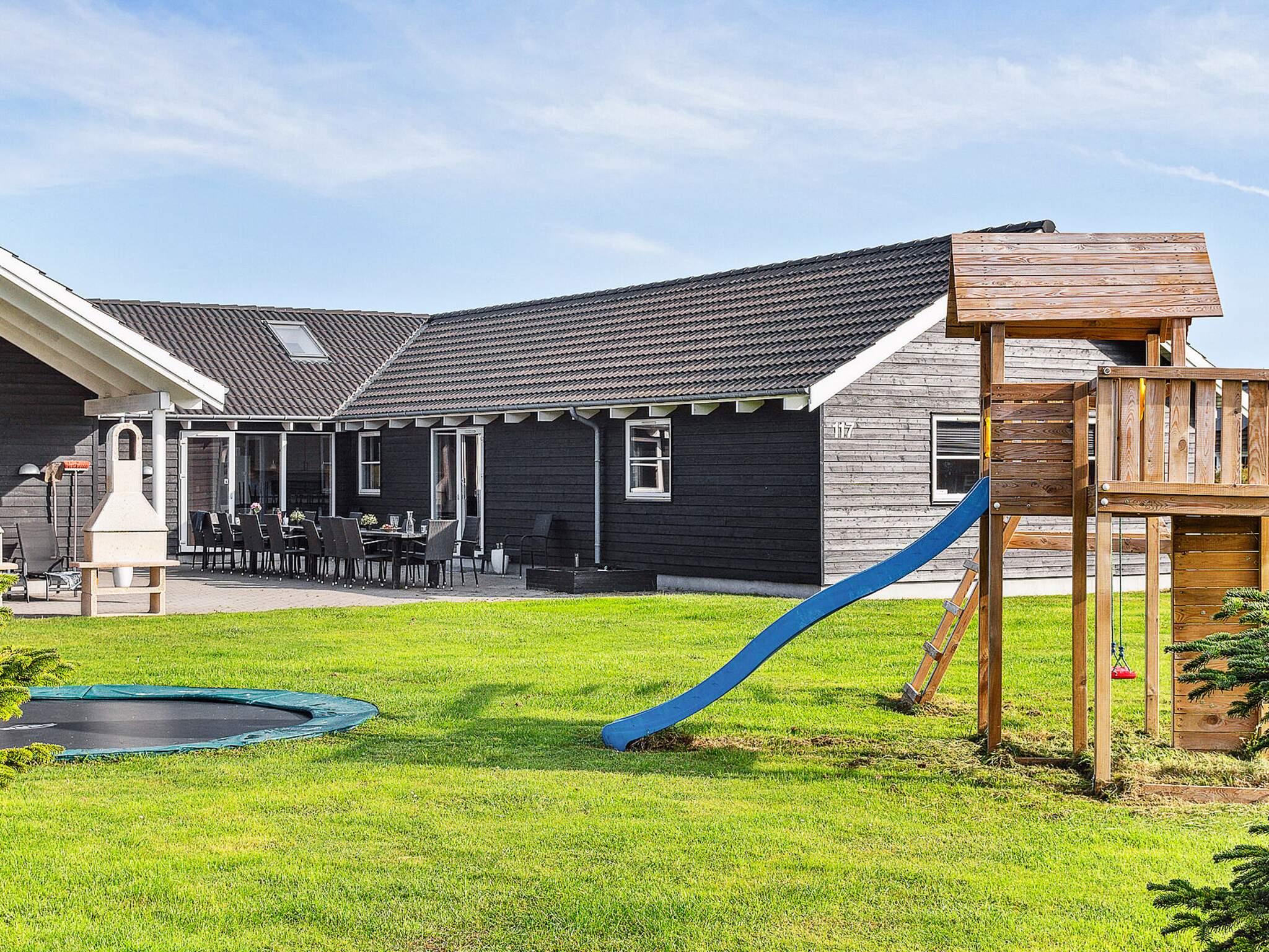 Grunden er på 3000 m², så der er rigelig plads til at udfolde sig med boldspil eller lignende. Desuden er der 200 m² terrasse til grill og solbadning samt afslapning og 24 m² overdækket terrasse, perfekt til en hyggelig grillaften med familie og venner. Til børnene er der legetårn og trampolin (benyttes på eget ansvar/forsikring).