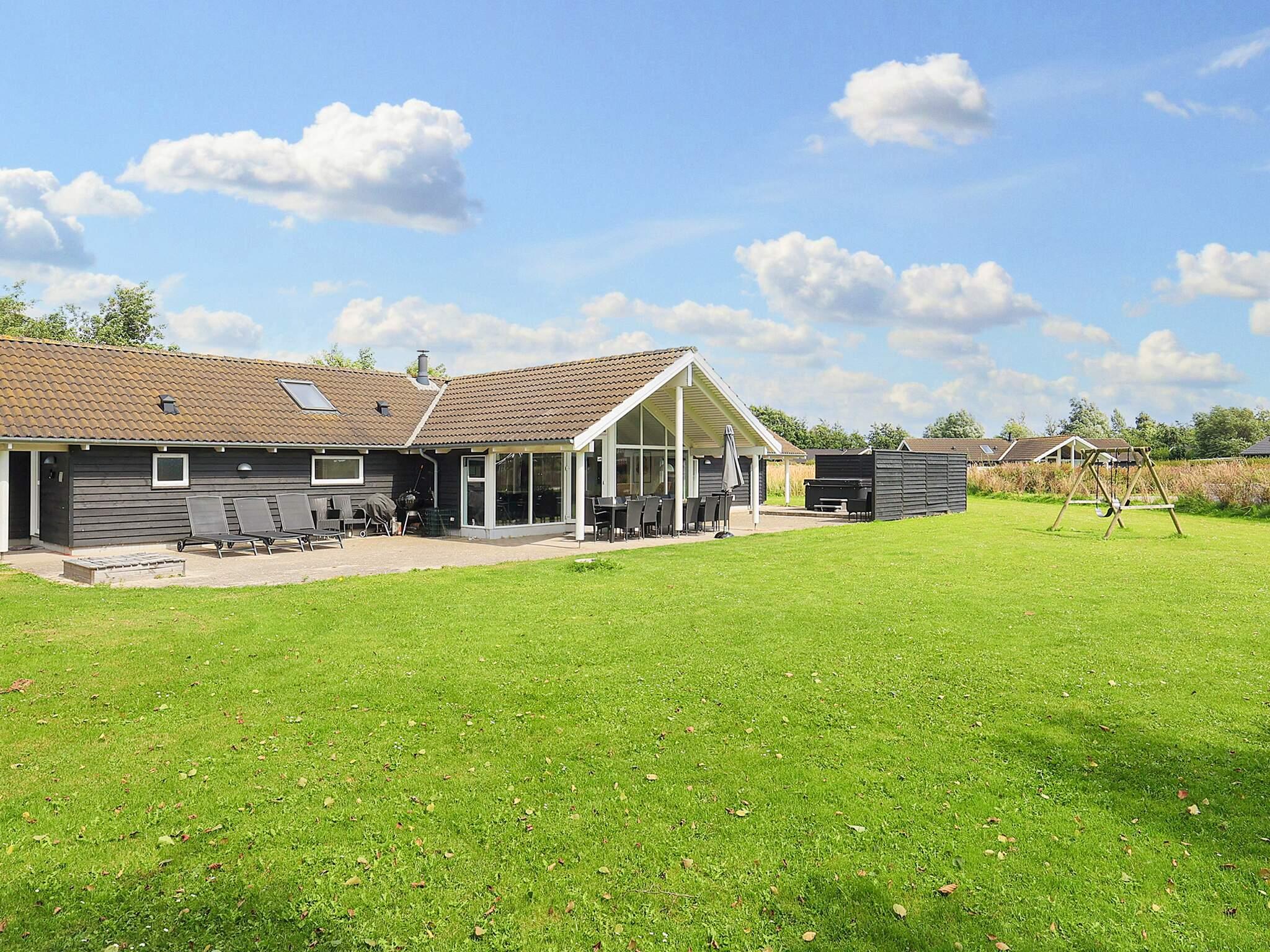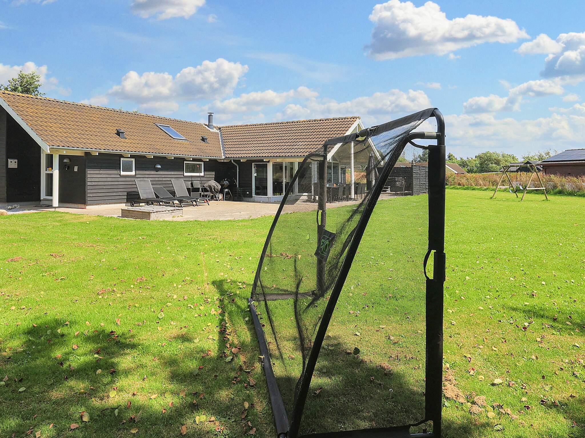 På den store grund, der omkranser huset, er der også tænkt på de mindste gæster med sandkasse og gynger. De voksne kan slænge sig på en solvogn på terrassen eller nyde spabadet.
