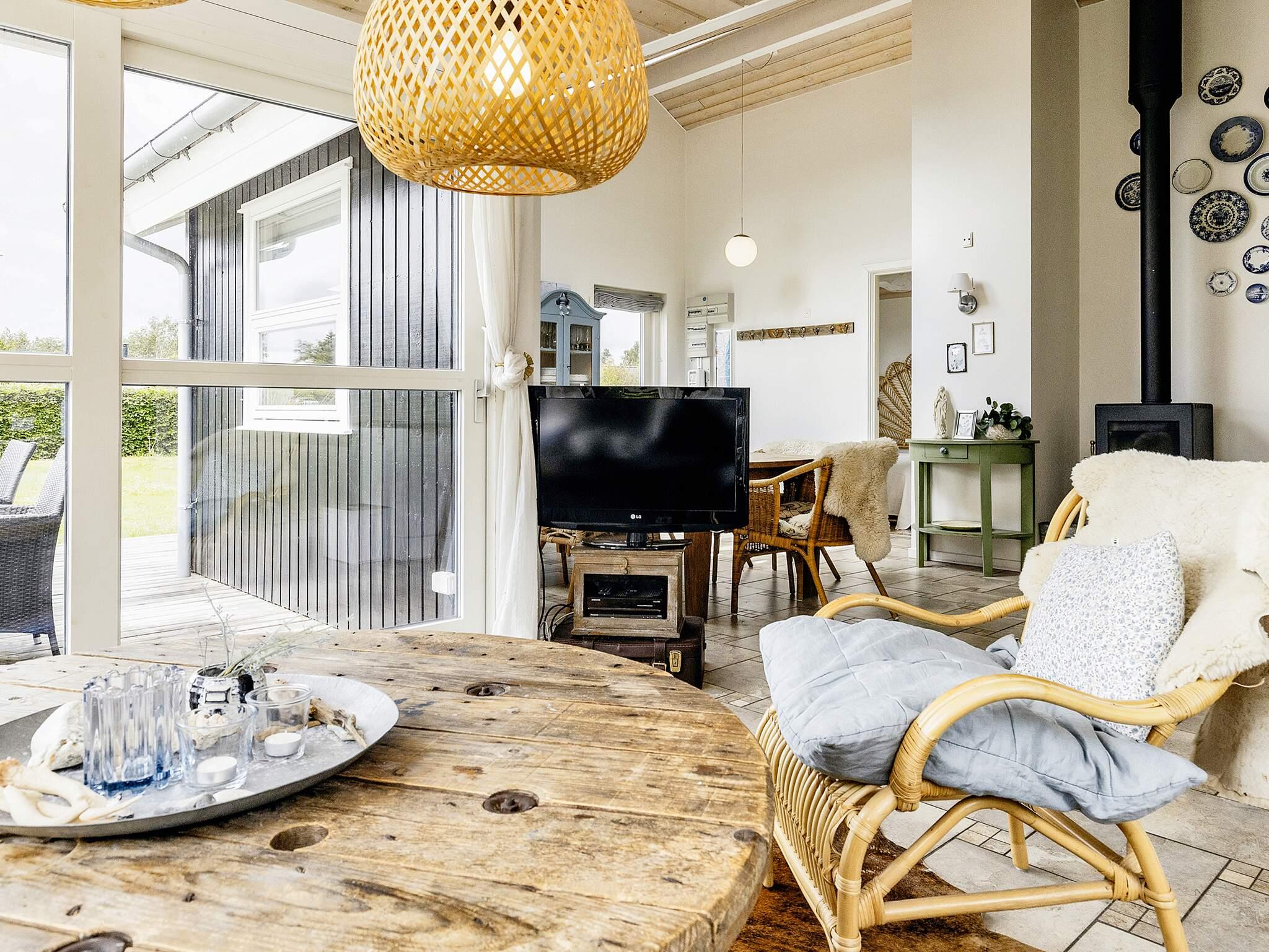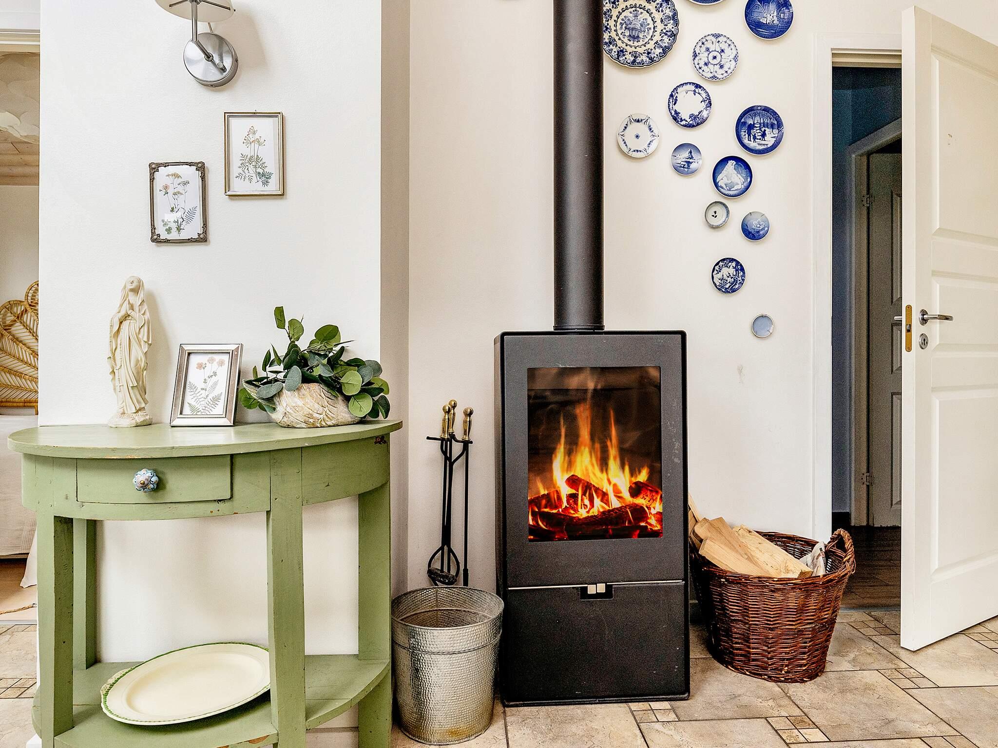 1 Opholdsstue: Brændeovn, stereoanlæg med cd, tv, høj stol