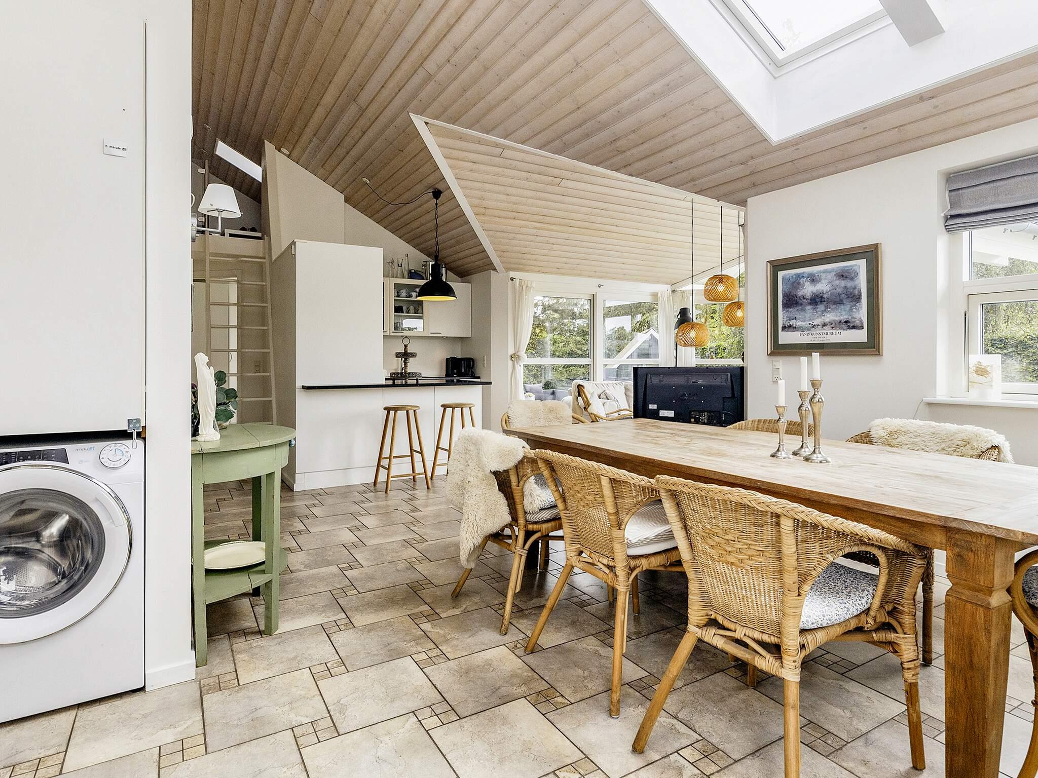 Dette charmerende sommerhus er den perfekte oase for afslapning og hygge. Beliggende i naturskønne omgivelser, byder huset på en indbydende atmosfære, hvor moderne bekvemmeligheder møder klassisk sommerhuscharme. Hjertet af sommerhuset er det rummelige åbne køkken alrum, hvor køkken, spiseplads og stue smelter sammen i en harmonisk enhed. Det veludstyrede køkken har alt, hvad du behøver for at tilberede lækre måltider, og den store spiseplads inviterer til hyggelige stunder. Stuen er indrettet med komfortable møbler og store vinduer, der lader dagslyset strømme ind og giver en smuk udsigt til haven. Efter en lang dag med udendørs aktiviteter kan du nyde afslapning i det indendørs spabad eller den skønne sauna. Her kan du lade stress og jag forsvinde, mens du nyder de varme bobler og den beroligende atmosfære. For ekstra bekvemmelighed er der et separat toilet. Sommerhuset har tre rummelige soveværelser med opbevaringsplads til tøj og personlige ejendele. De lyse og venlige værelser skaber de perfekte rammer for en god nats søvn. En charmerende hems fungerer som en hyggelig krog hvor man kan sidde med en god bog eller spil. Denne ekstra plads giver en følelse af eventyr og tilbyder et skønt sted at slappe af. Sommerhuset er omgivet af to terasser således at der både forefindes en til både morgen - og aftensol. Den store terrasse er udstyret med havemøbler og grill, hvilket gør den perfekt til udendørs spisning og solbadning og ligger op ad den dejlige have som giver plads til leg og afslapning. Der er også det storebål sted hvor omgivelserne giver fornemmelsen strandhygge. Der er også rig mulighed for at nyde den omkringliggende natur, hvad enten det er gennem gåture, cykelture eller blot at sidde og nyde stilheden. Dette sommerhus er en perle, der byder på både afslapning og hyggelige stunder. Med sine moderne faciliteter og smagfulde indretning er det det ideelle sted for en uforglemmelig ferie. Udlejes ikke til ungdomsgrupper.