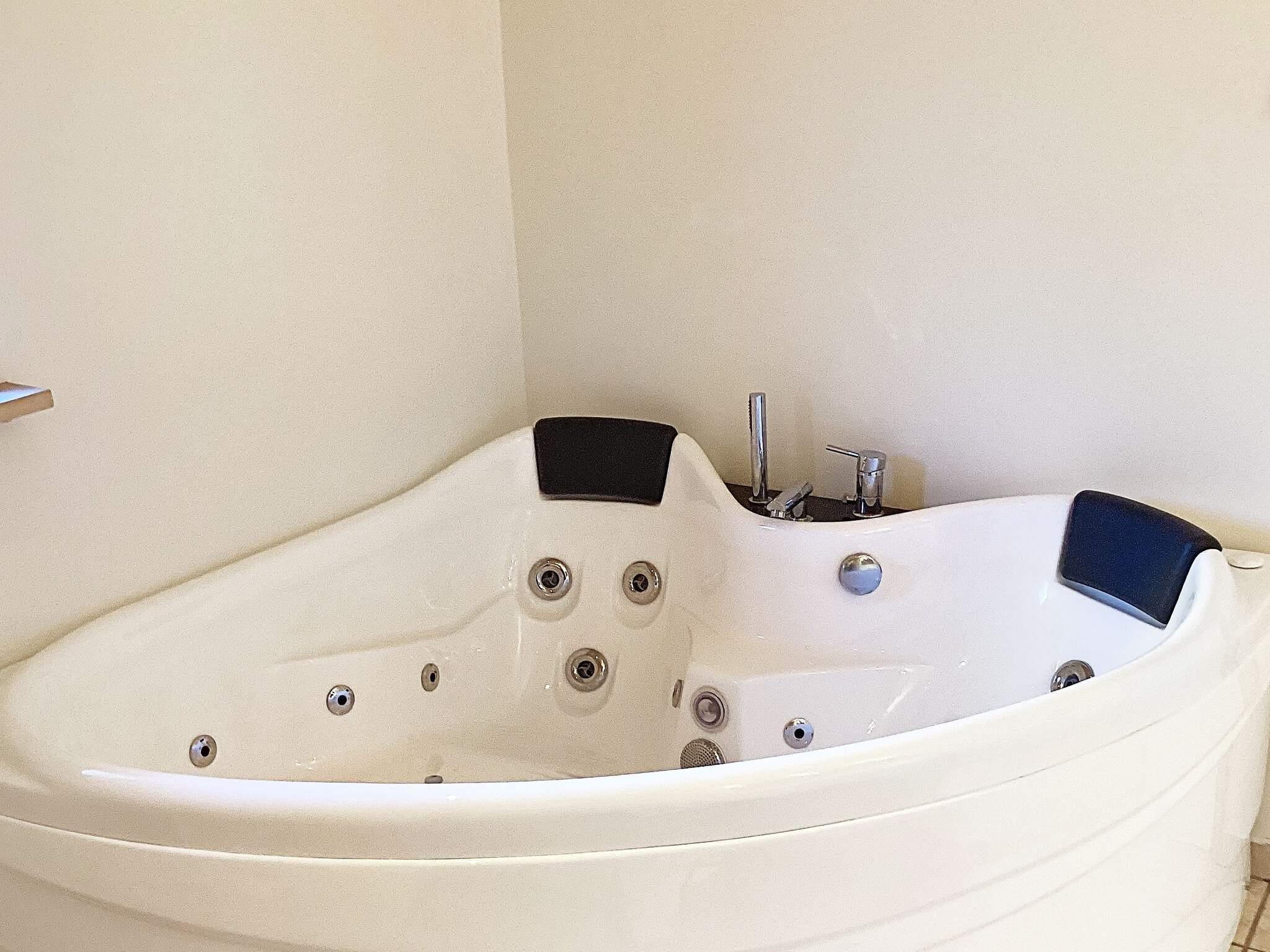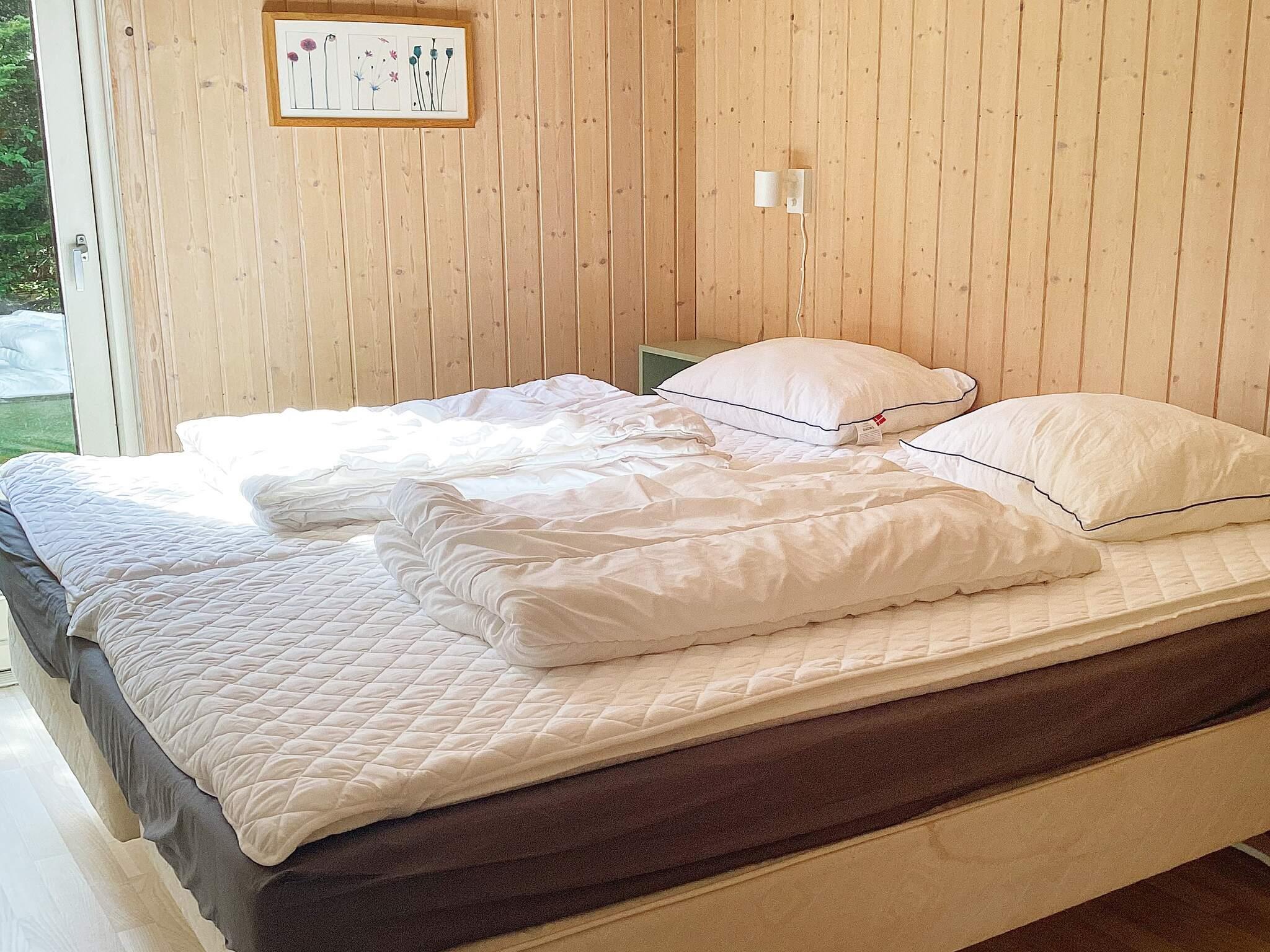 Soveområderne er fordelt på to soveværelser med hver to enkeltsenge, to mere med dobbeltseng og en hems med to senge. Ekstra TV i et af værelserne. Der er to gode badeværelser med gulvvarme og bruseniche. Den ene er desuden udstyret med et smukt spabad til 2 personer og direkte adgang til saunaen. Vaskemaskine og tørretumbler til rådighed i det lille badeværelse.
